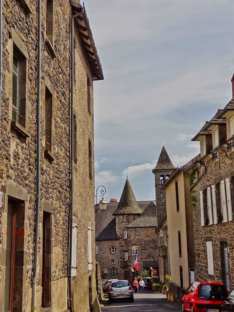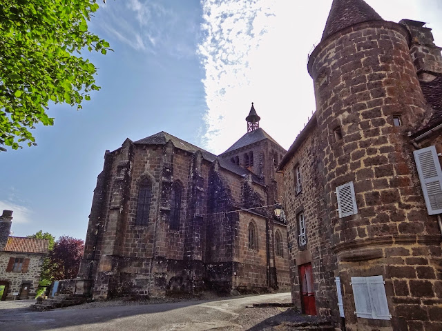 Como digo, este pueblo de la región de Limousin no estaba previsto en nuestra ruta planificada, pero la carretera nos hizo pasar por el medio del mismo y allí pudimos reencontrarnos con esa arquitectura francesa de tejados de pizarra que tanto nos gusta. No nos quedó más remedio que bajarnos del coche para disfrutar de la plaza en la que se encuentra su iglesia y edificios señoriales o palaciegos tan identificativos y característicos en Francia.