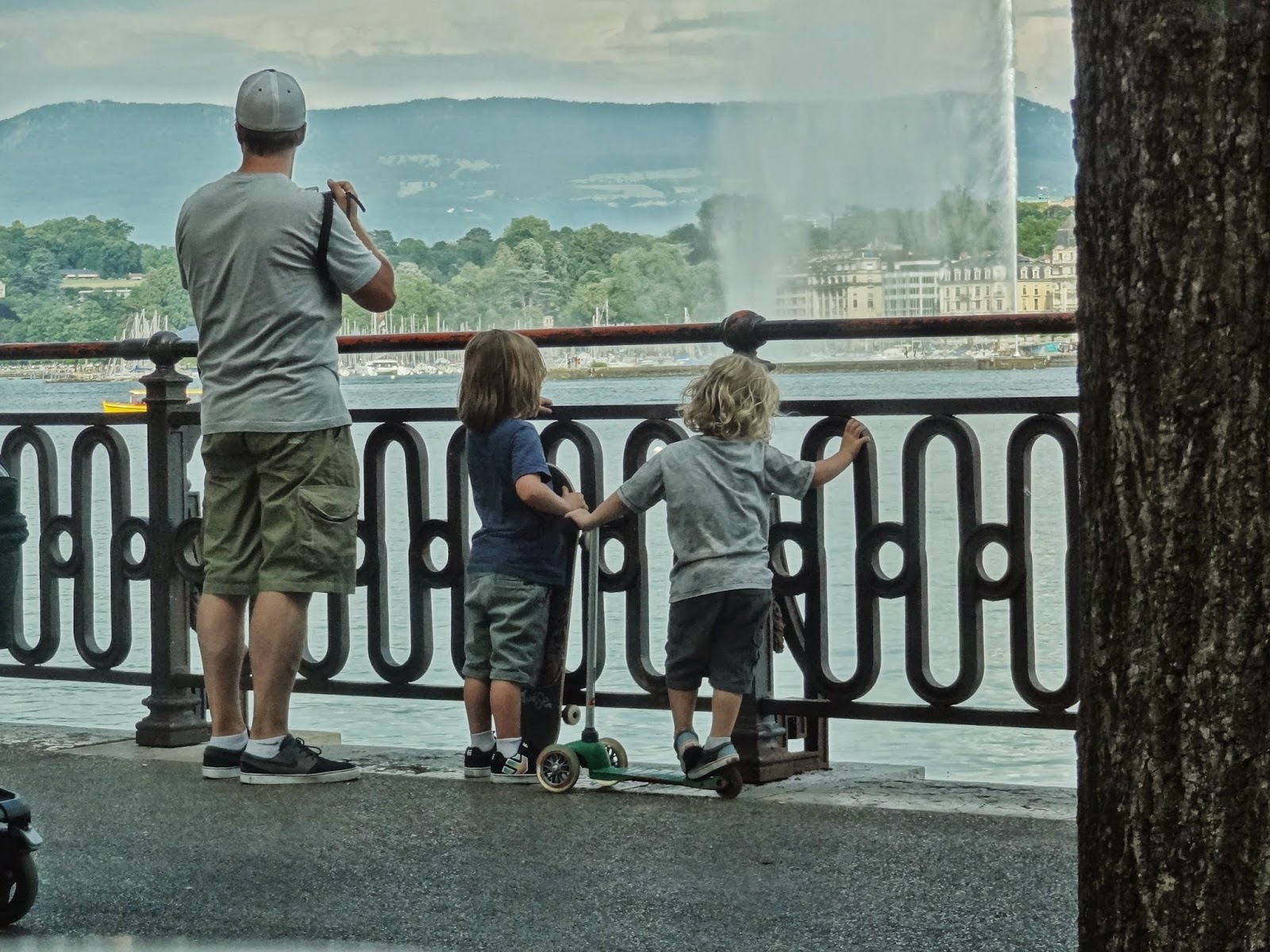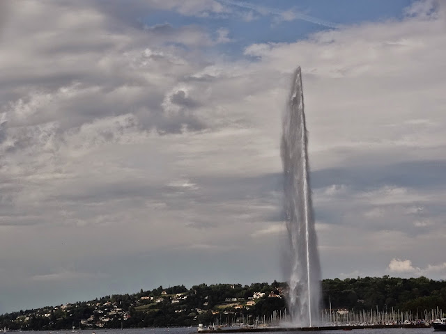 Ya en Ginebra, solo paramos un instante al borde del lago y no tuvimos intención de ver completa la ciudad, así que aparcamos muy cerca de su monumento principal, el «Jet d’eau», un surtidor de agua de 140 metros de altura en la orilla del Lago Lemán.