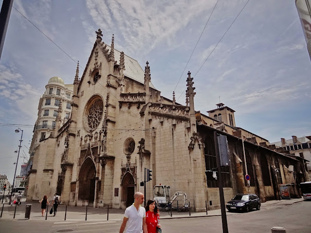Después de ver por fuera la plaza e iglesia de Saint Paul nos dejamos caer por una fantástica calle, que a nosotros nos causó muy buena impresión, la Rue de la Juiverie con una mezcla de gótico francés y renacimiento italiano. Puertas y ventanas talladas en piedra , multitud de teatros, cabarets, escuelas de arte dramático y carteles medievales en muchos de los números de esta calle le otorgan un aspecto singular.