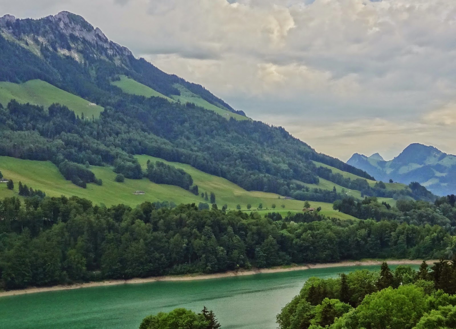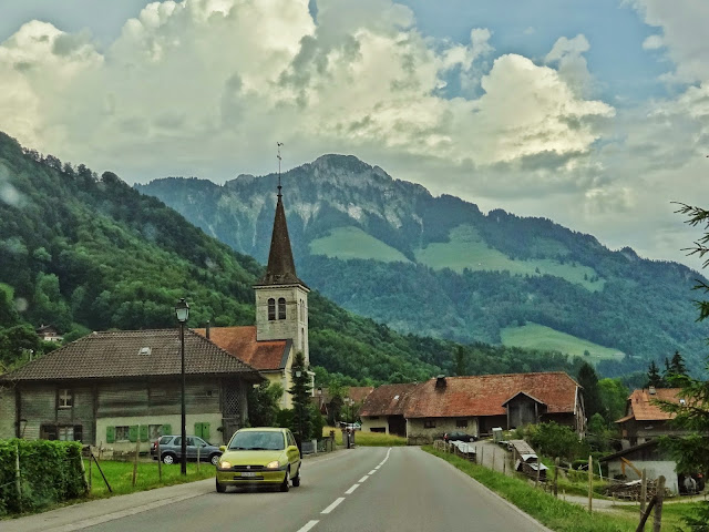 El trayecto hasta Cerniat, dejando a la derecha riberas del Lago Leman, empieza a ofrecer imágenes típicamente suizas y montañosas que se hacen de un verde más intenso, más suizo digamos, según nos acercamos a Cerniat.