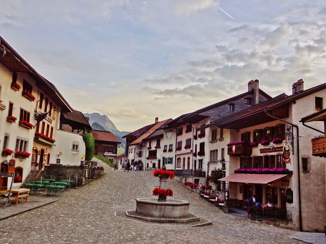 Habíamos llegado a Gruyeres, sobre las 8:30 de la tarde, casi anocheciendo, los restaurantes carísimos, aunque es general en Suiza y con respecto a otros destinos. Sentimos por primera vez la diferencia notable de precios entre Suiza y España, Francia, etc.