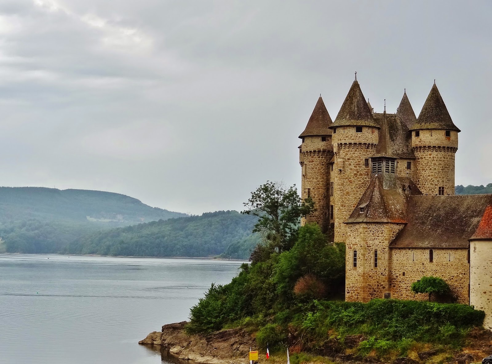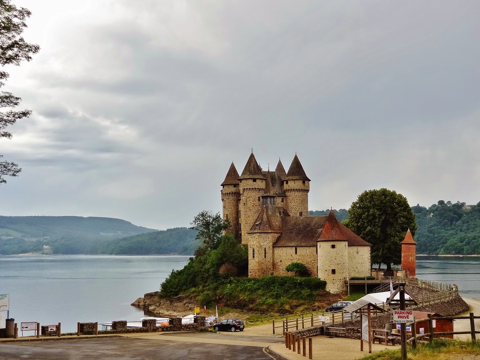Llegamos a este castillo y el lago que lo acoge, después de un recorrido en gran parte por carreteras secundarias en las que bosques frondosos reverdecen esta zona de la Auvernia Alta.