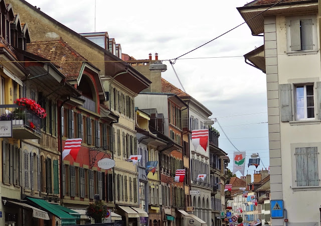 Nos paramos un instante en esta ciudad de 15.000 habitantes en la que se puede destacar su castillo, construido en 1286 por Luis de Saboya. Hoy en día, el castillo tiene cuatro museos históricos el museo militar del Lago Lemán, el museo suizo de figuritas históricas, el museo de la artillería y el museo de la gendarmería del Lago Lemán.