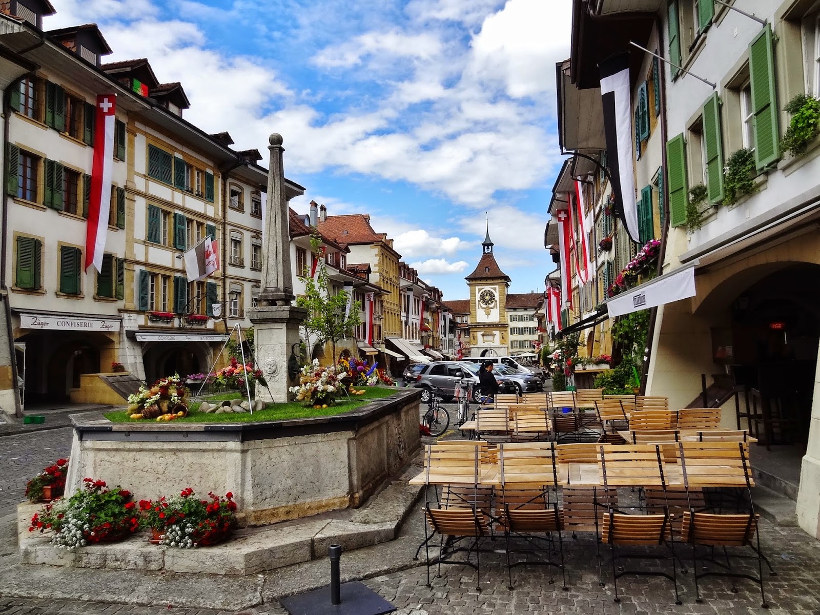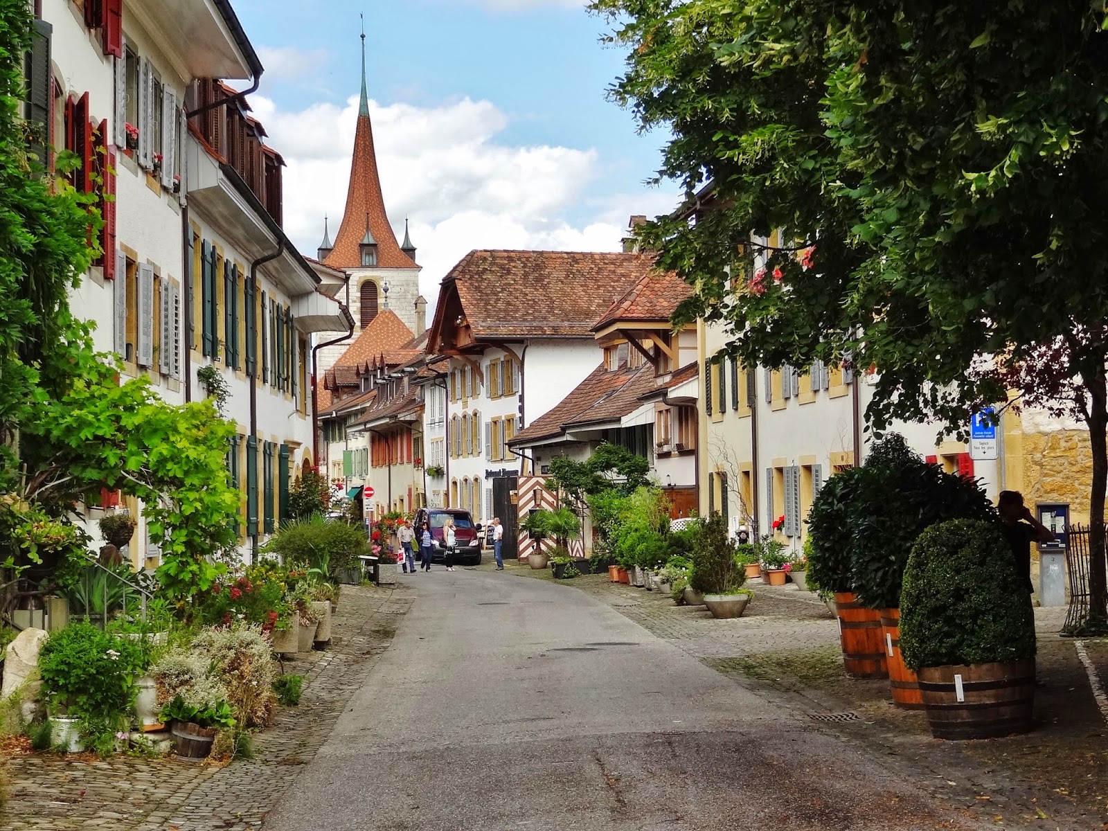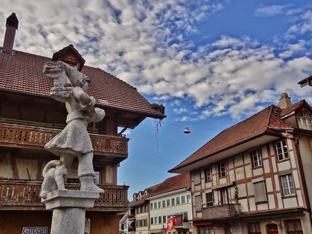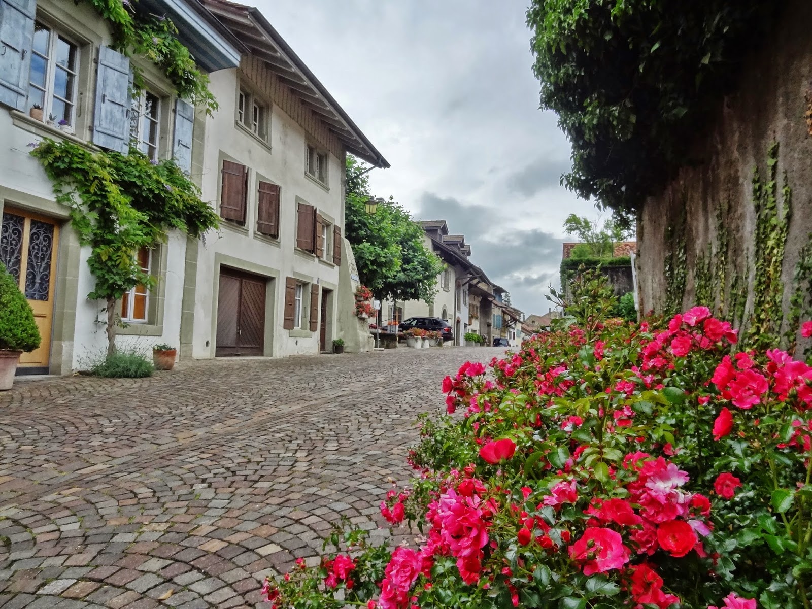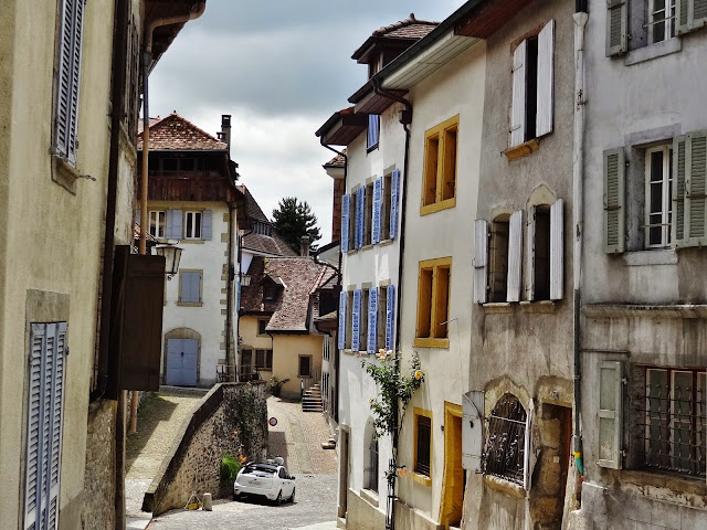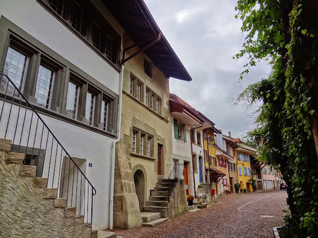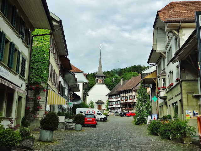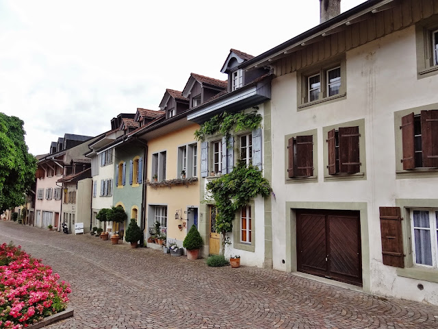 Los primeros pueblos que íbamos a visitar son más que decentes, eso si nada sorprendente en ese nuestro afán comparativo con lo que ya muestras retinas conocen. Hasta Avenches María José, seguramente que influida por el mal tiempo reinante manifestaba que lo que estábamos viendo, aún siendo muy bonito, no conseguía sorprenderle. Pero una vez visitamos Avenches nuestra opinión fue cambiando y la intensidad subiendo con cada pueblo que visitamos.