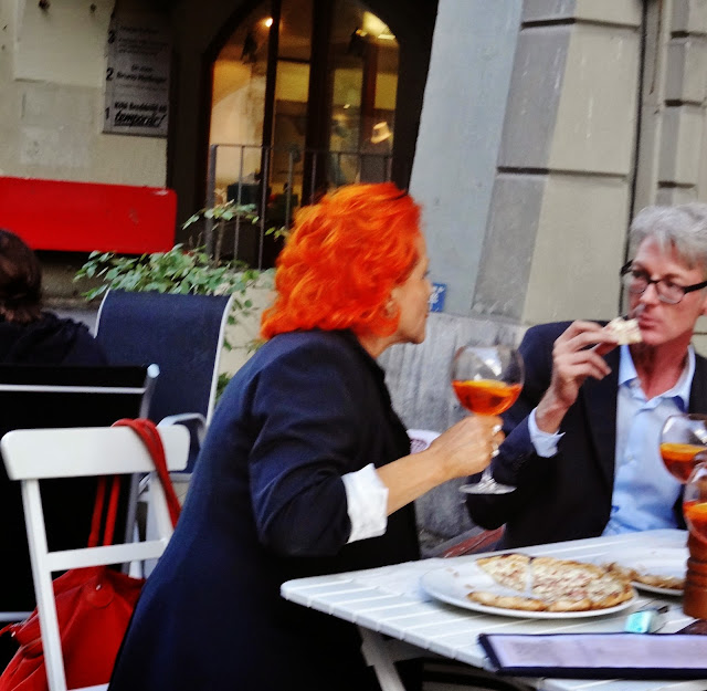 Y terminamos nuestra visita a esta bellísima ciudad, muy animada, con mucha gente en terrazas cenando, tomando aperitivos, etc. Nos llamó la atención como muchos Suizos tomaban un licor de color anaranjado (Aperol Spritz, una mezcla de Champagne o vino espumoso, soda y Aperol), algunos combinando muy bien con el teñido capilar….