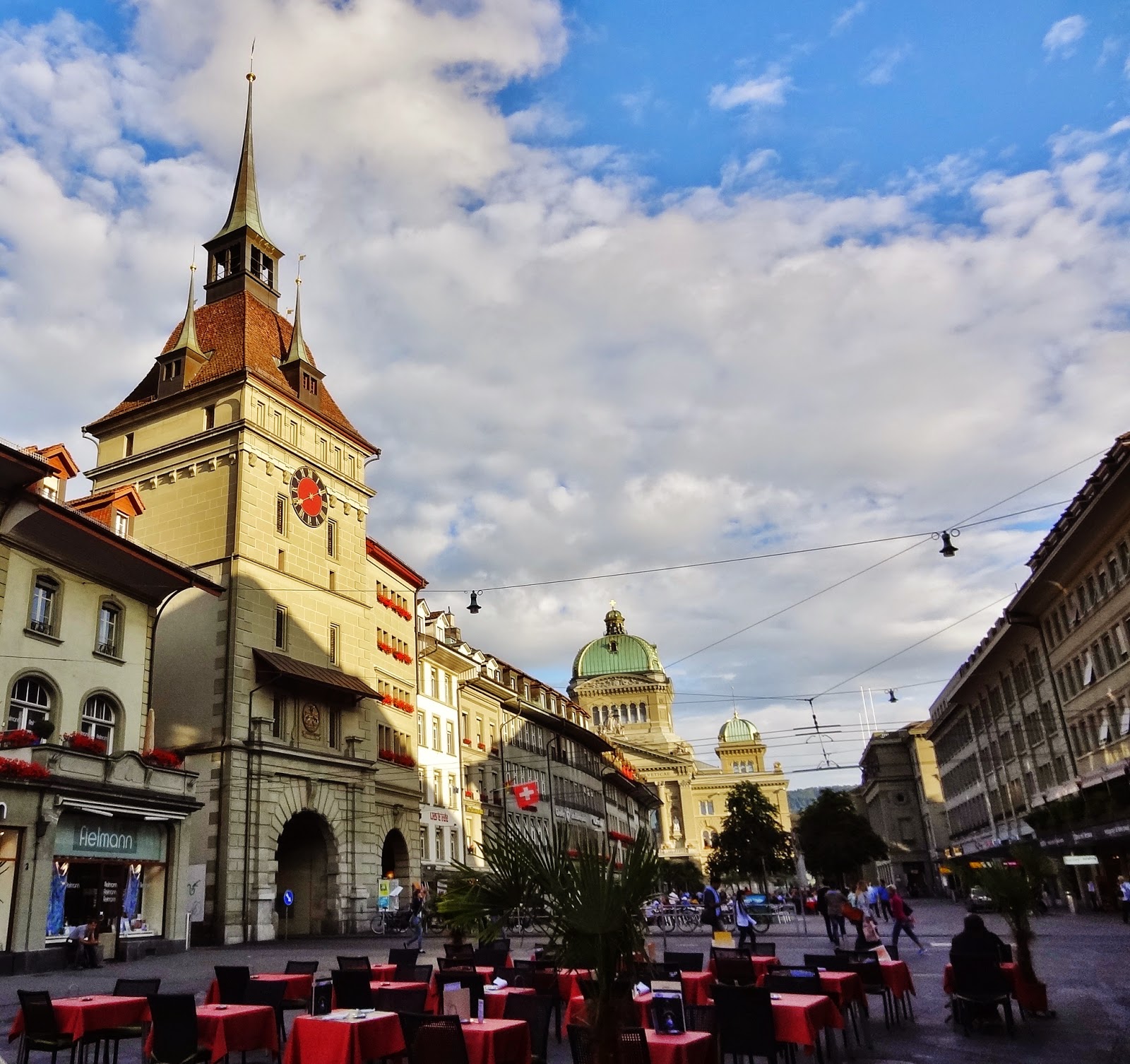 Salimos en dirección a la Torre de la Prisión para llegar a la Bärenplatz (allí volveríamos para cenar ). En esta plaza había muchos aficionados al fútbol de diversas nacionalidades que seguían en pantallas situadas en las terrazas de bares y restaurantes, algunos de los partidos del mundial de fútbol Brasil 2014.