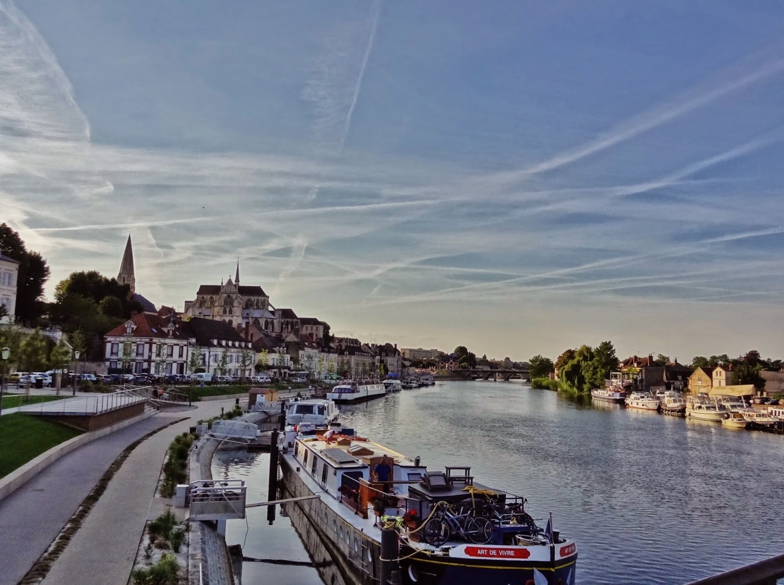 Partimos desde uno de los aparcamientos del Quai de la Republique situado en la ribera del Rio Yonne, una zona muy bien acondicionada de paseos y zonas verdes. Desde allí hay una espectacular vista de la zona más elevada de la ciudad y del río.