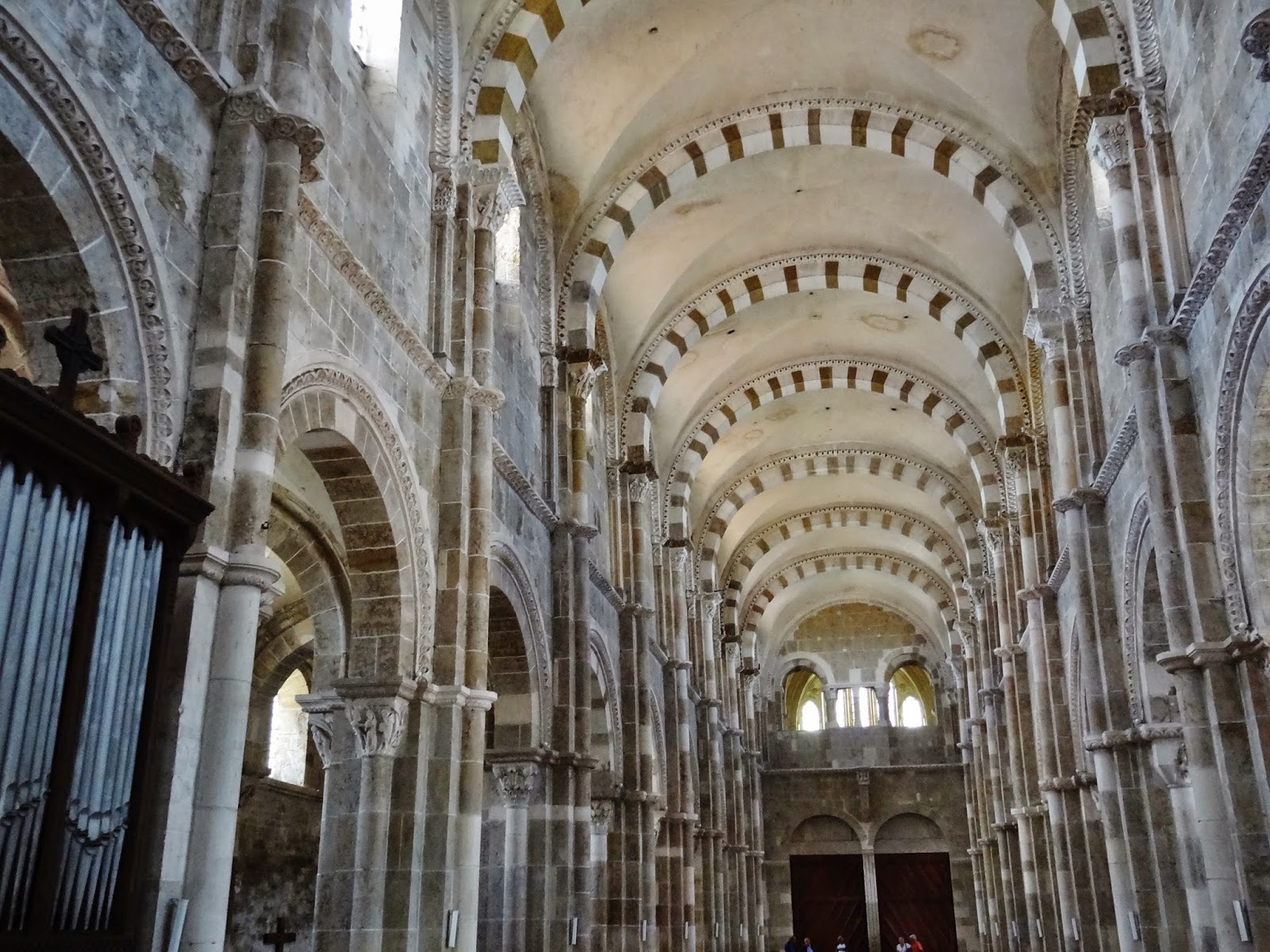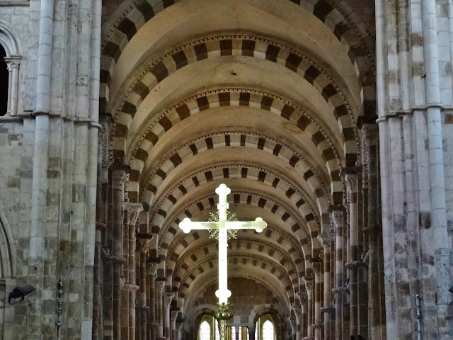 El interior de la Basílica es una nave románica, la más amplia de Francia en la que destacan y domina la luz que recibe la misma , como las majestuosas obras escultóricas que encontramos en cada paso que damos tanto en su capiteles, como en los tímpanos que presiden cada una de sus puertas.