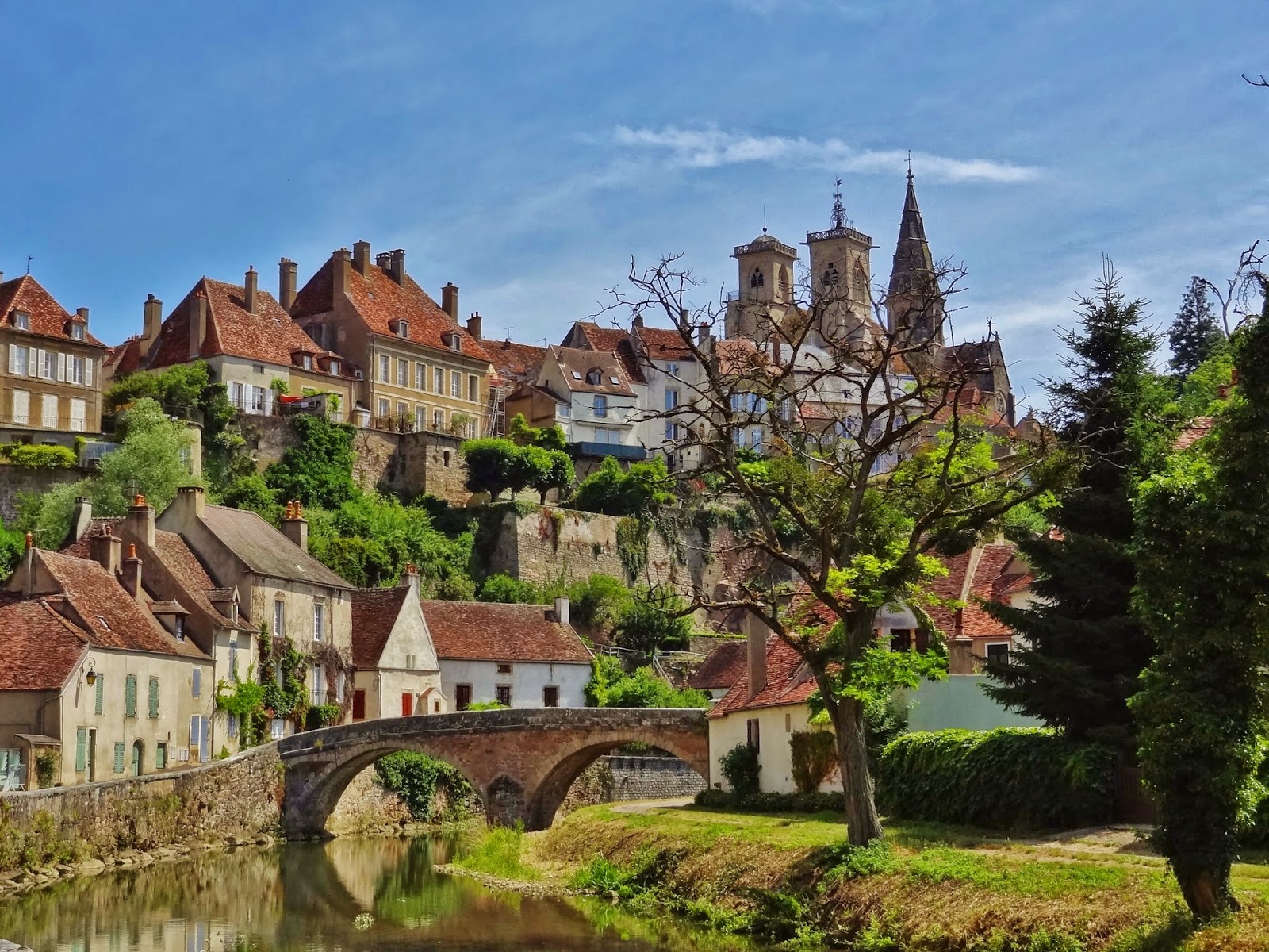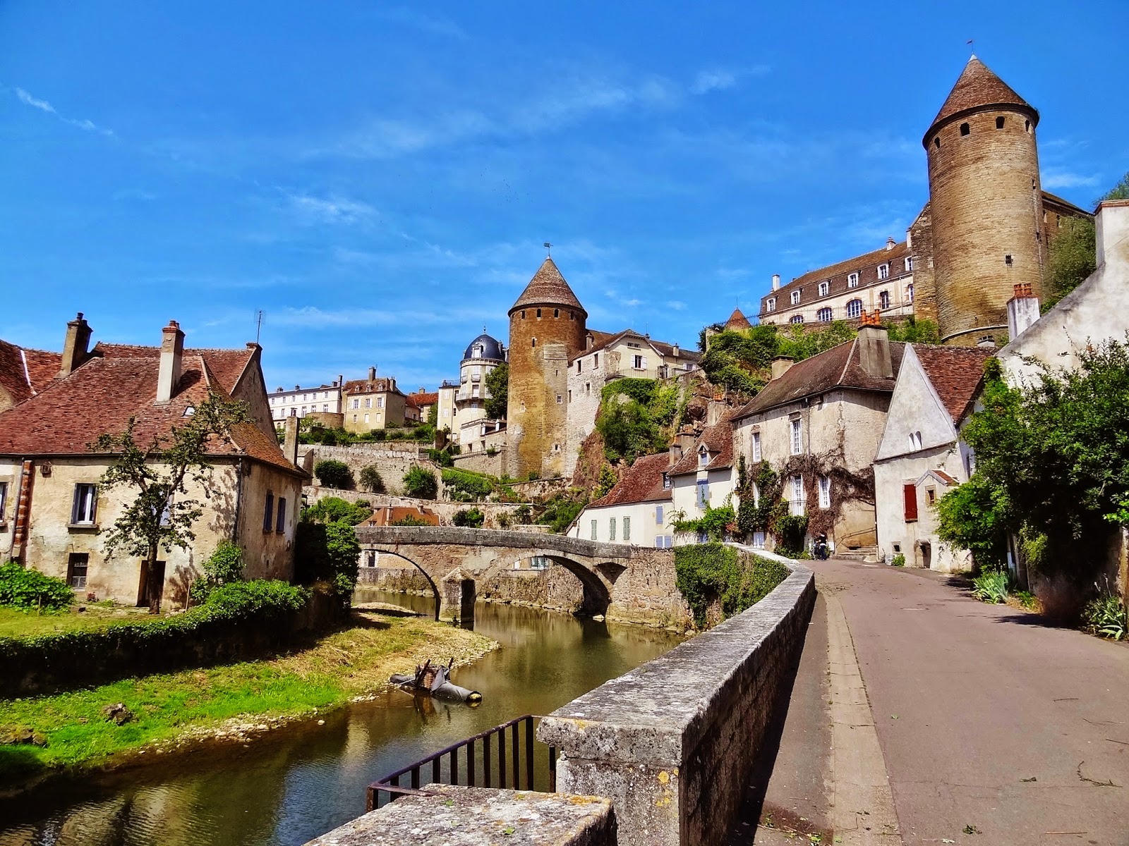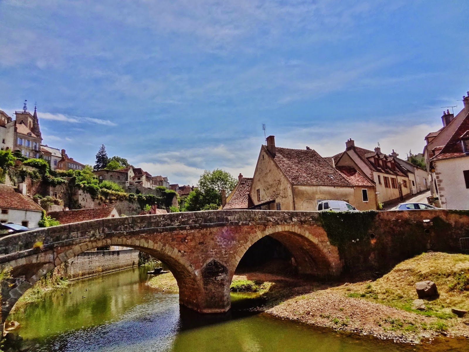 Pueblo de 4.400 habitantes que nos gustó mucho, especialmente en el recorrido extramuros, cerca de dos de los puentes más importantes de la ciudad, el Pont Joly y el Pont Pinard.