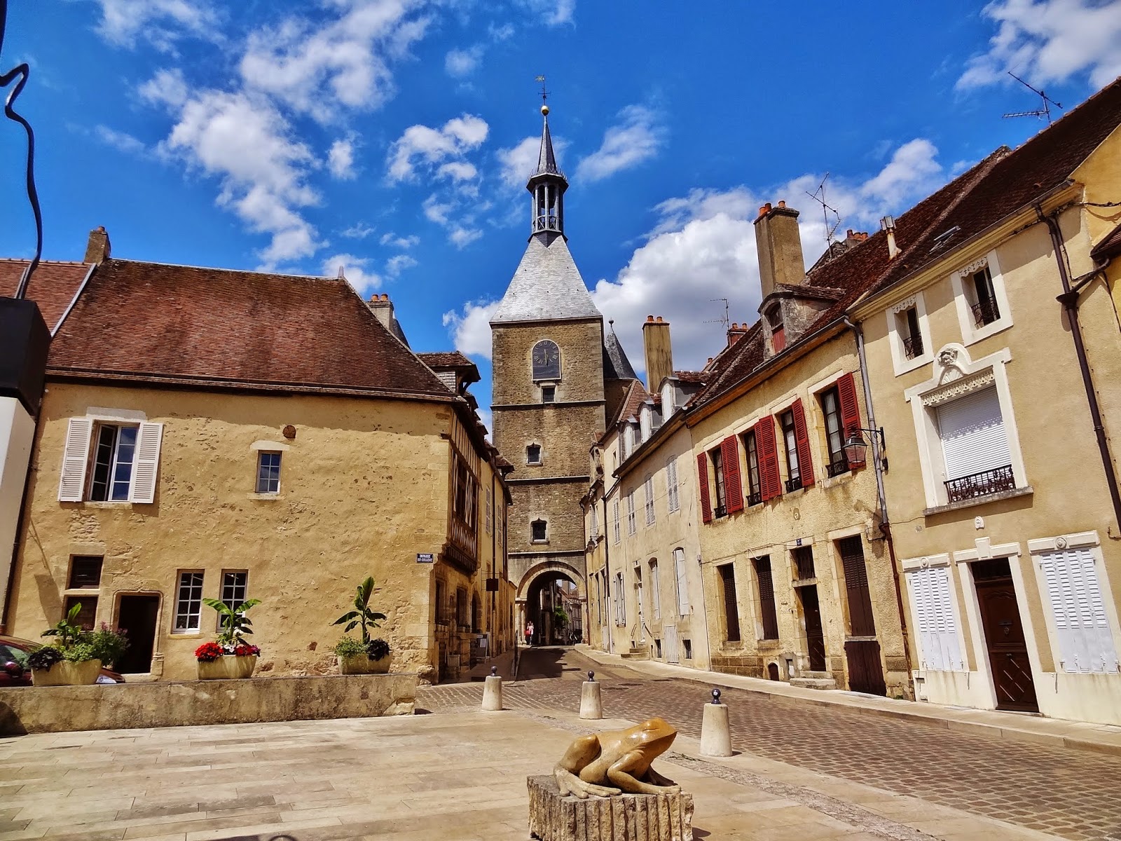 Paseamos por la calle principal que lleva directamente a la Puerta del Reloj, que una vez cruzada nos deja en una pequeña plaza en la que se encuentra la Iglesia de Saint Lazare, entorno a la que se muestran algunas de las imágenes mas evocadoras de Avallon.