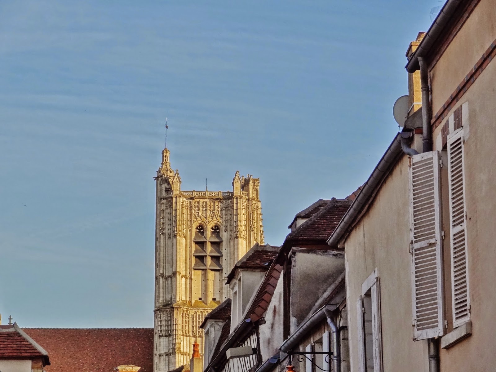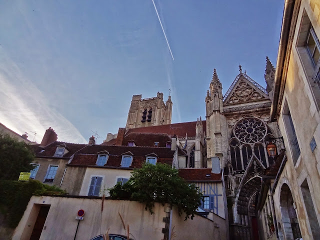 Llegamos al atardecer, por lo que solo pudimos dar un breve paseo por alguno de los puntos más importantes de Auxerre, como son la Catedral de Saint Etiennne, La Torre del Reloj y la Abadía de Saint Germain, con un recorrido parecido al reflejado en el siguiente google. maps, que sumó a las caminatas previas, otros dos kilómetros y medio a nuestras cansadas piernas.