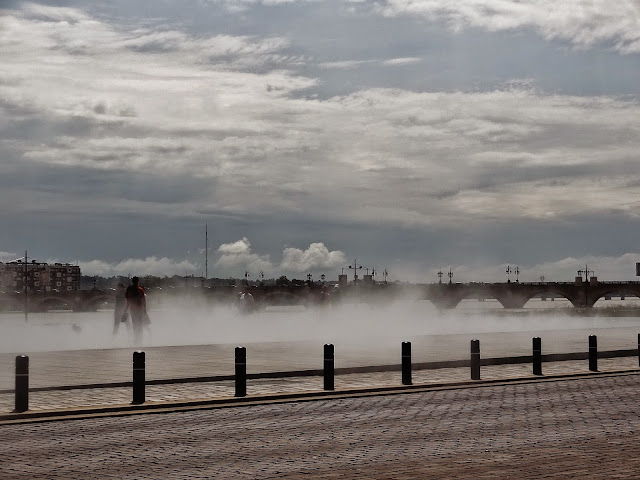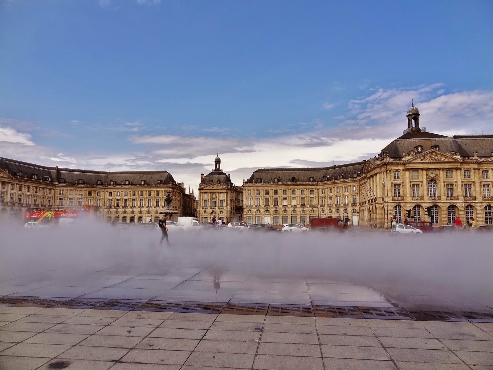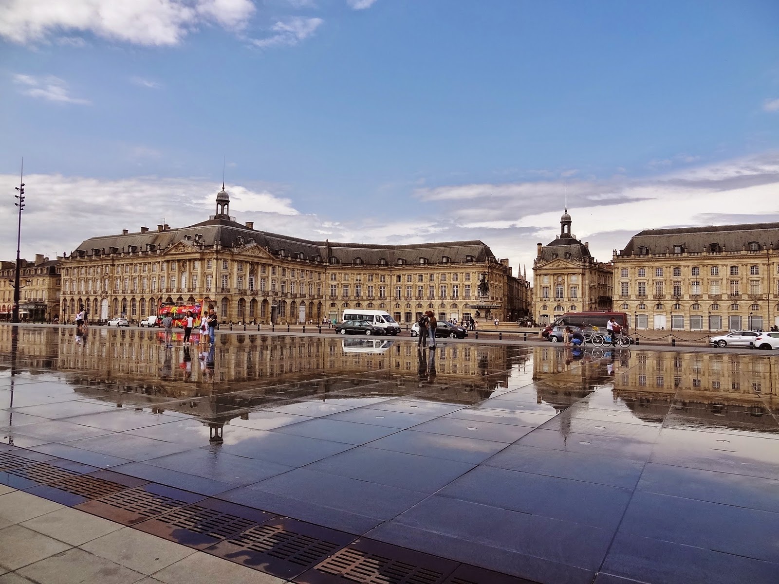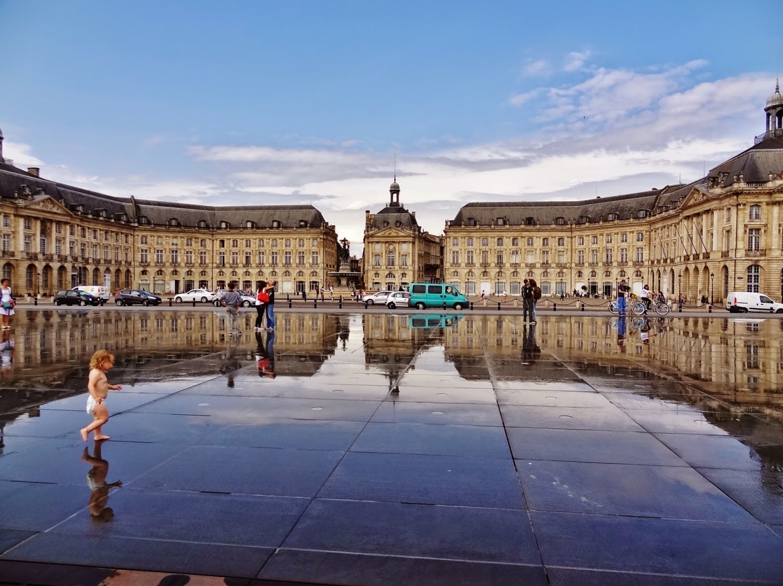 Al otro lado de la calle los muelles del puerto de Burdeos sobre el río Garona. Justo entre ambos se encuentra el famoso Miroir d´Eau o espejo de agua, monumento representativo e imprescindible de la ciudad de Burdeos.