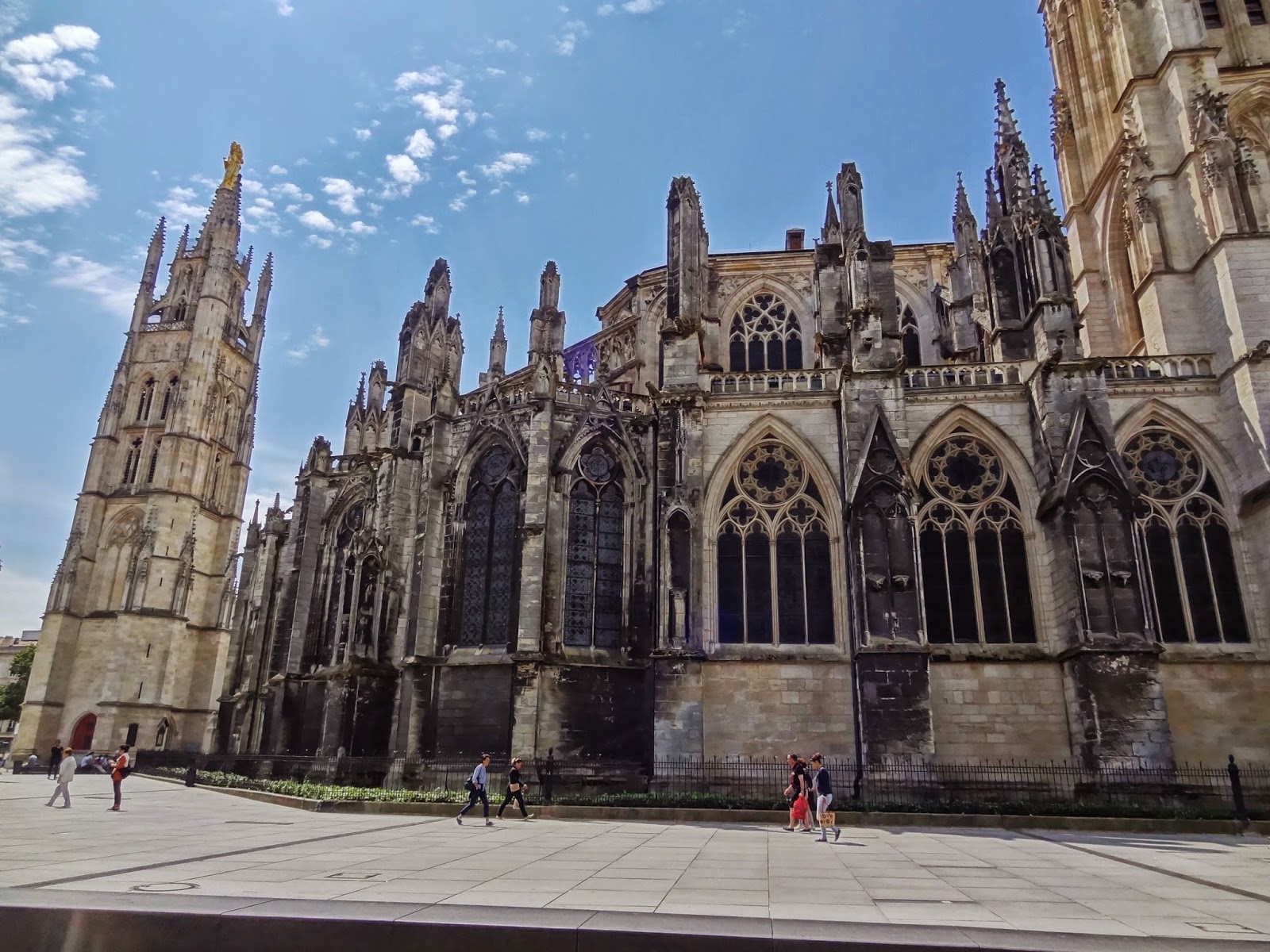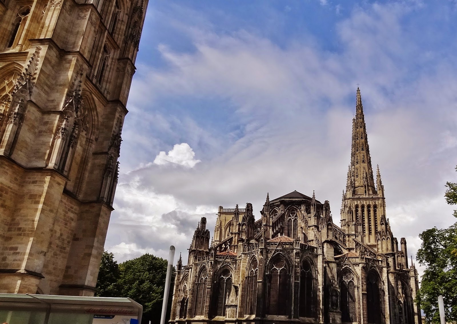 El tren siguió su recorrido por las calles bordelesas para llegar hasta la Place Pey Berland lugar en el que se encuentra el principal edificio religioso de la ciudad, la Catedral de Saint André reconocido como Patrimonio de la Humanidad desde el año 1998, de origen románico allá por el siglo XI aunque modificada y reconstruida en siglos posteriores.