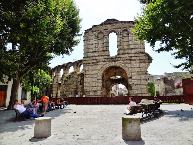 Continuamos, pasando cerca de la Porte Dijeaux del año 1753, Palais Galien en donde se encuentran los restos de un anfiteatro romano del siglo II que son los únicos restos conservados del pasado romano de Burdeos o Burdigala.