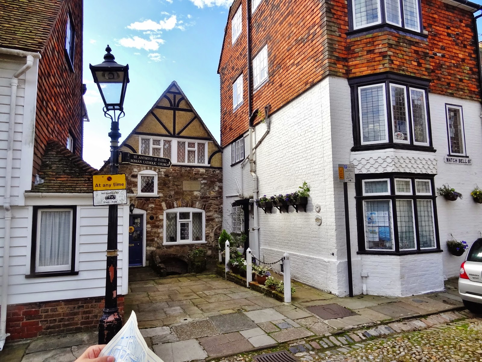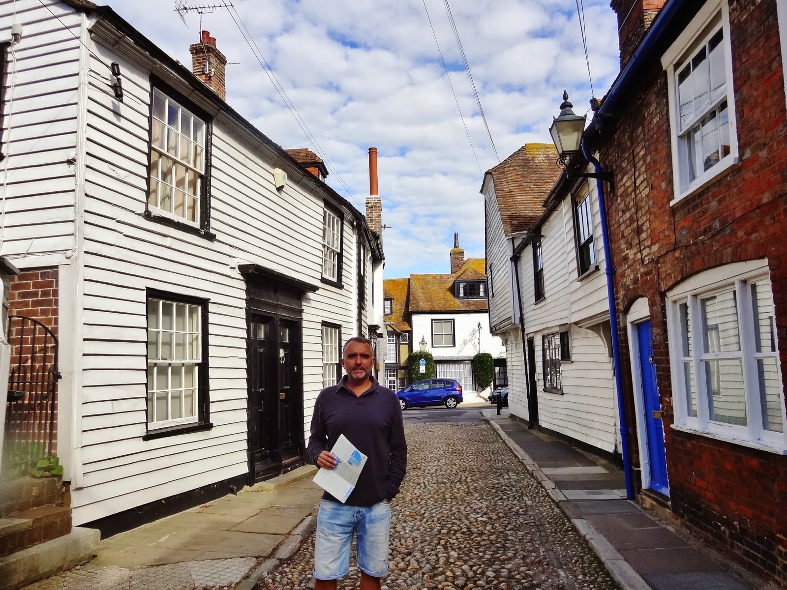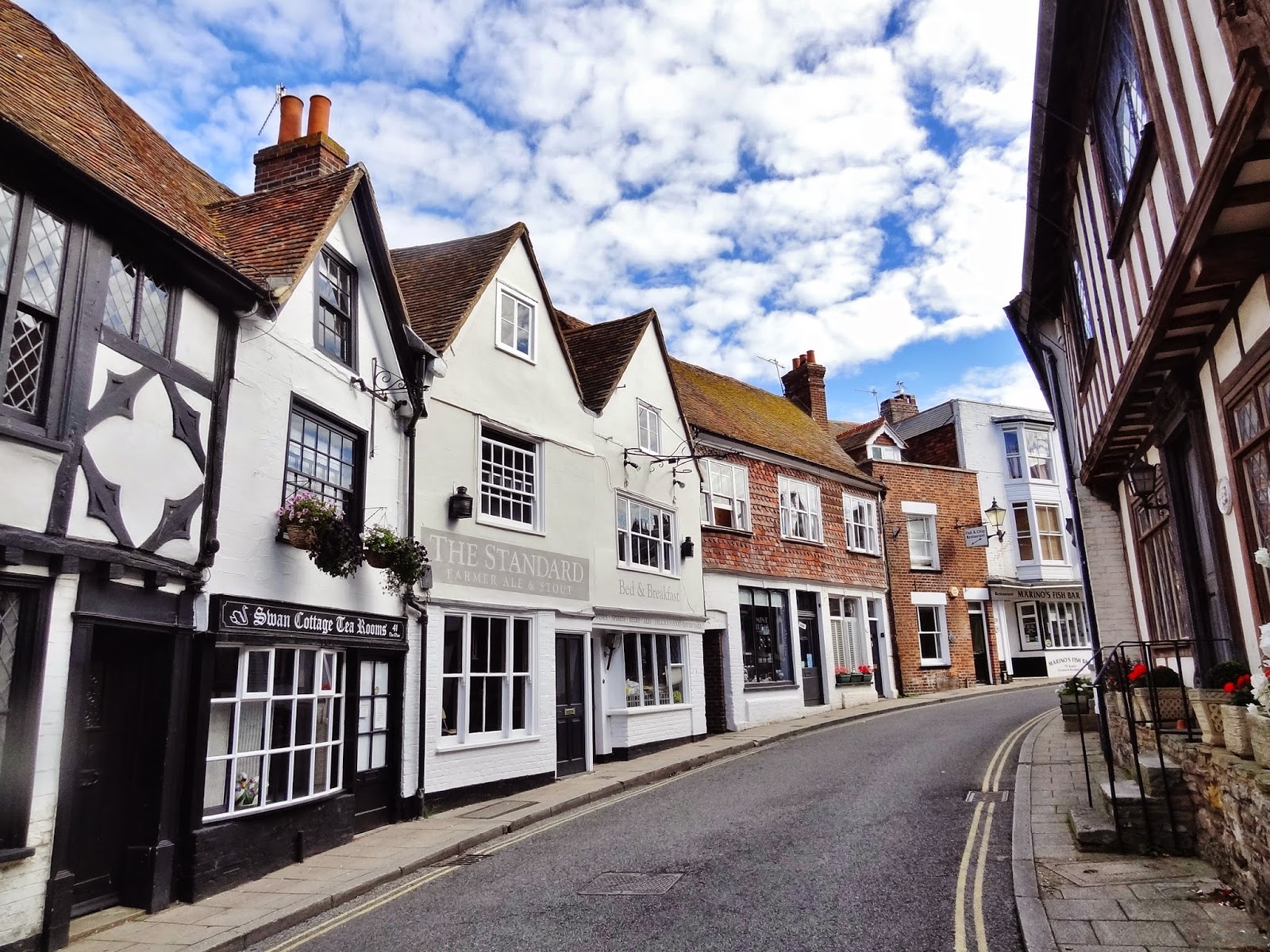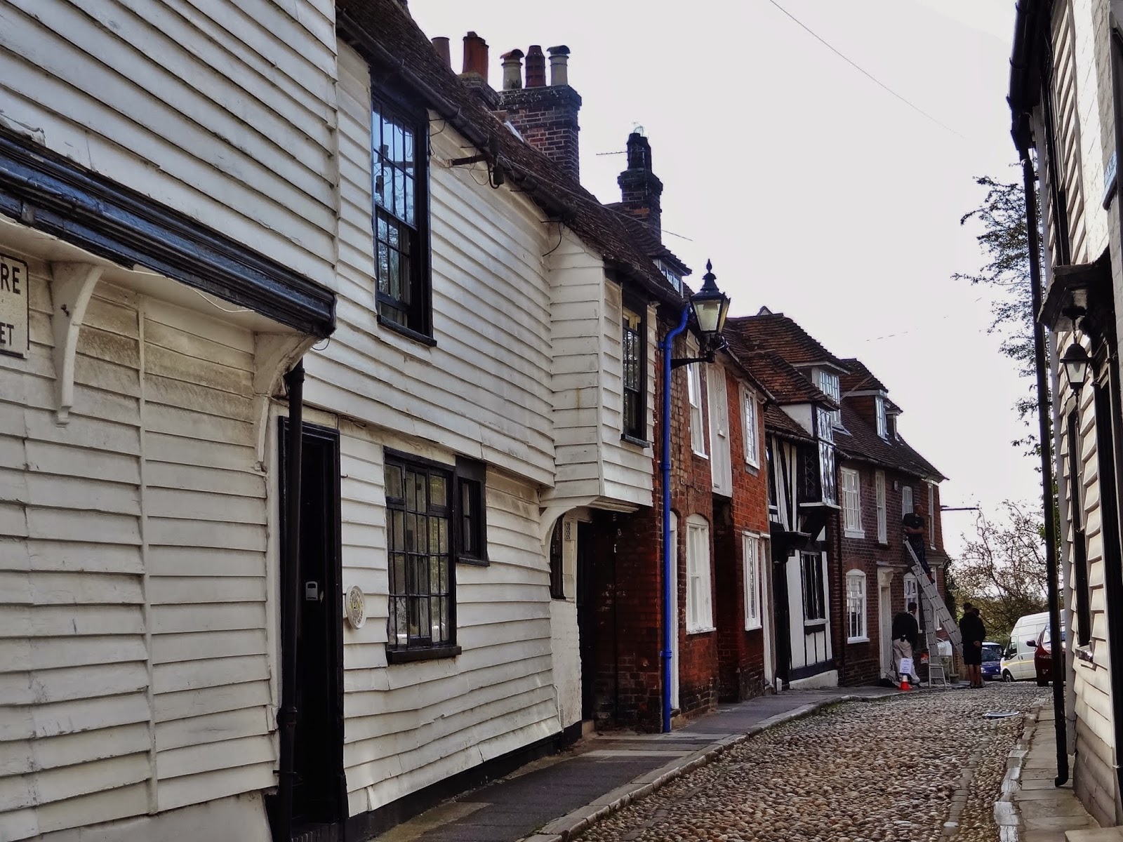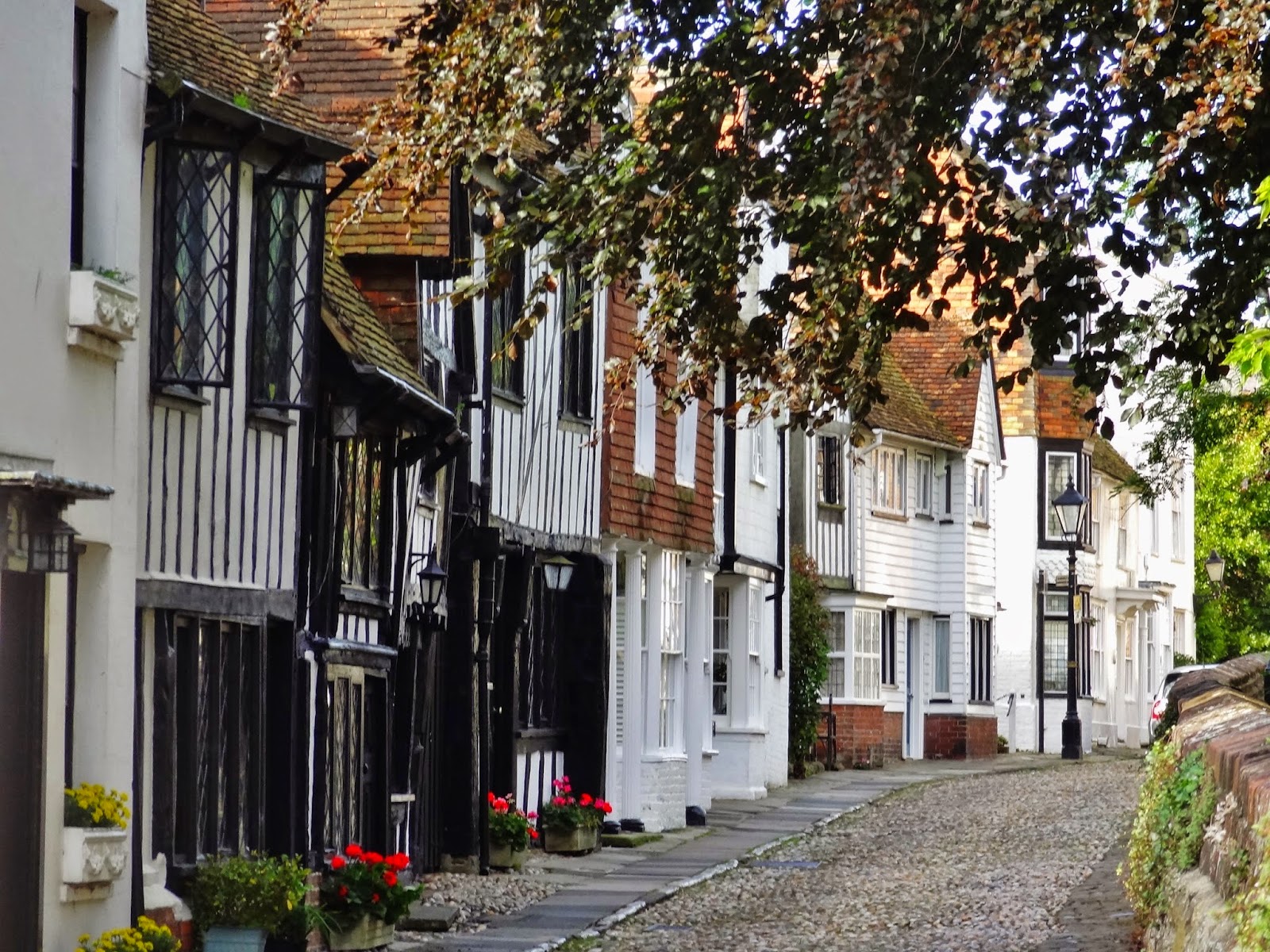 Descendimos hasta la parte baja del casco histórico por la calle empedrada de Watchbell Street hasta llegar a la calle The Mint que conecta con High Street. Solo avanzamos un pelín al principio de esta calle, antes de retroceder sobre nuestros pasos para subir por la calle más conocida y típica de Rye, Mermaid Street.