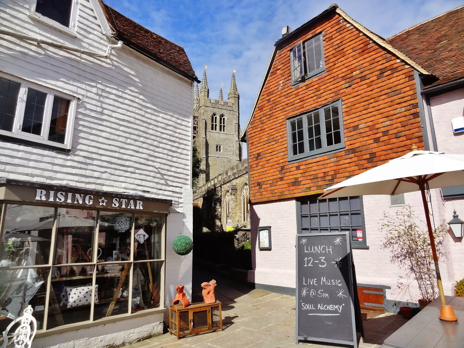 No muy lejos de Rye está el pueblo de Tenterden que como interés turístico no cuenta más que con una amplia calle, High Street repleta de casas históricas, tiendas, restaurantes y pubs separados de la calzada por amplios arcenes de césped y árboles.