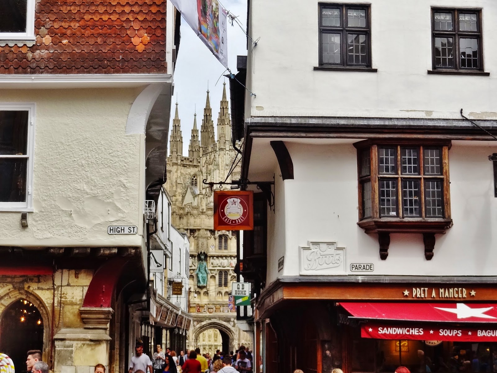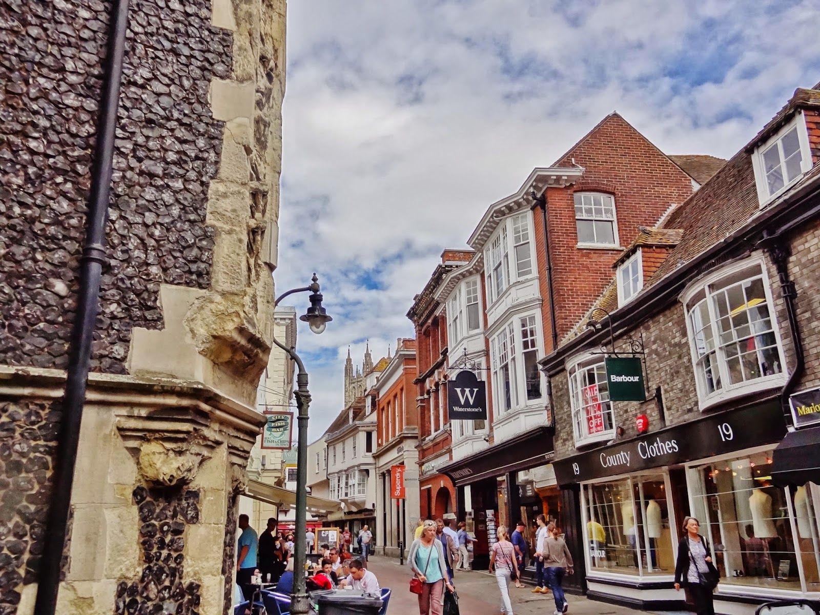 En el paseo por su calle principal tuvimos la sensación de que nos perdíamos algo en la visita, porque lo que habíamos leído sobre este pueblo, aventuraba algo más, pero por más que miramos, tuvimos que darnos por satisfechos con su única calle interesante, la larga y ancha High Street, en la que destaca también la torre de la Iglesia de St Mildred.