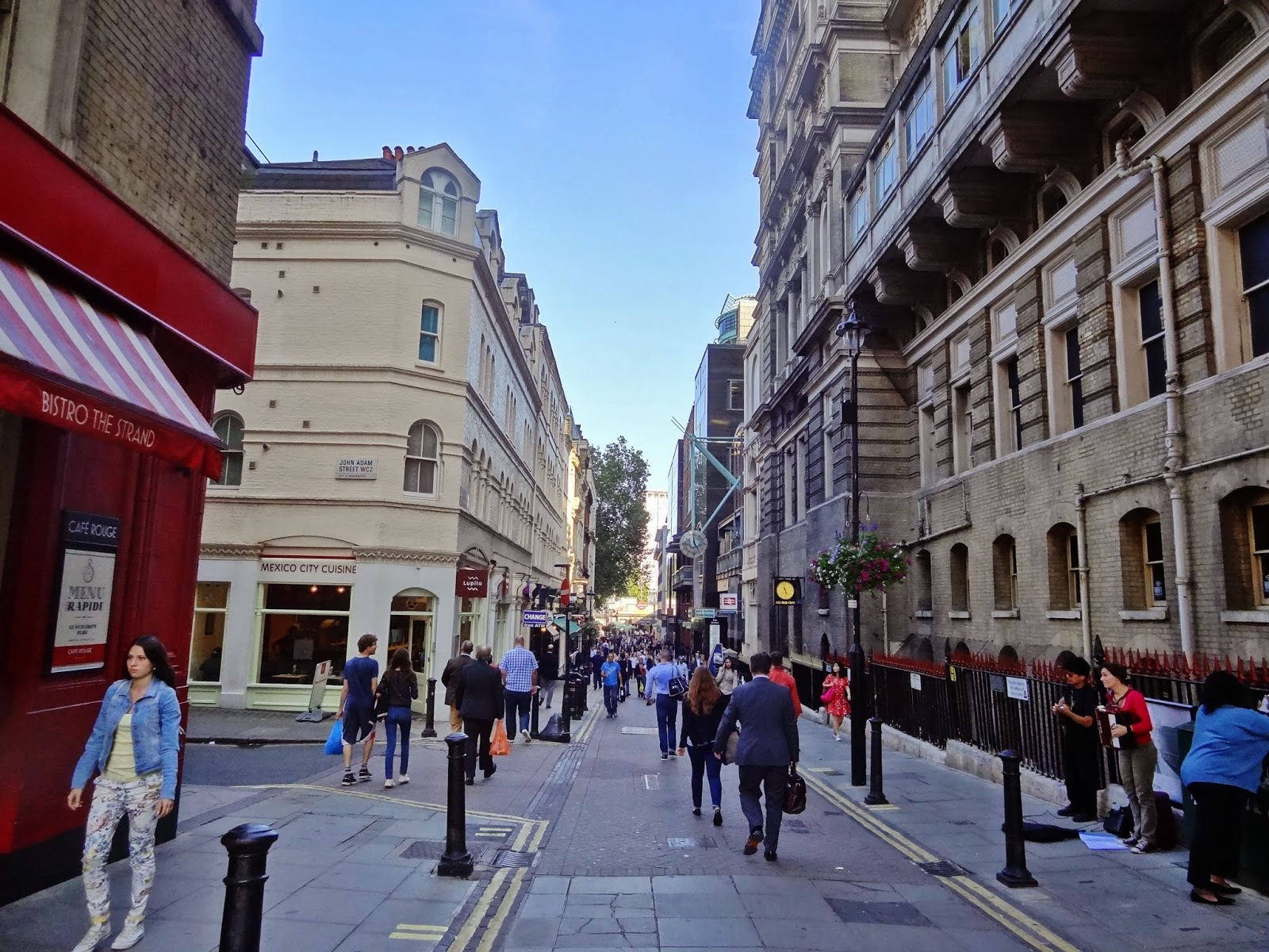 El crucero llegó al punto final en Westminster, a eso de las cinco menos cuarto de la tarde. Caminando por Victoria Street y posteriormente callejeando nos fuimos hasta Covent Garden, en concreto hasta el Museo del Transporte. El ambiente de las calles como en el resto de días, muy animado.