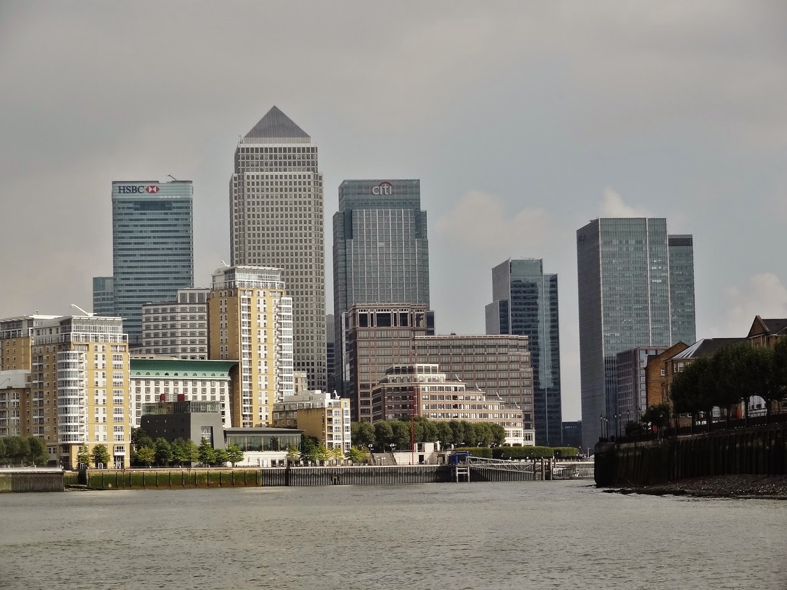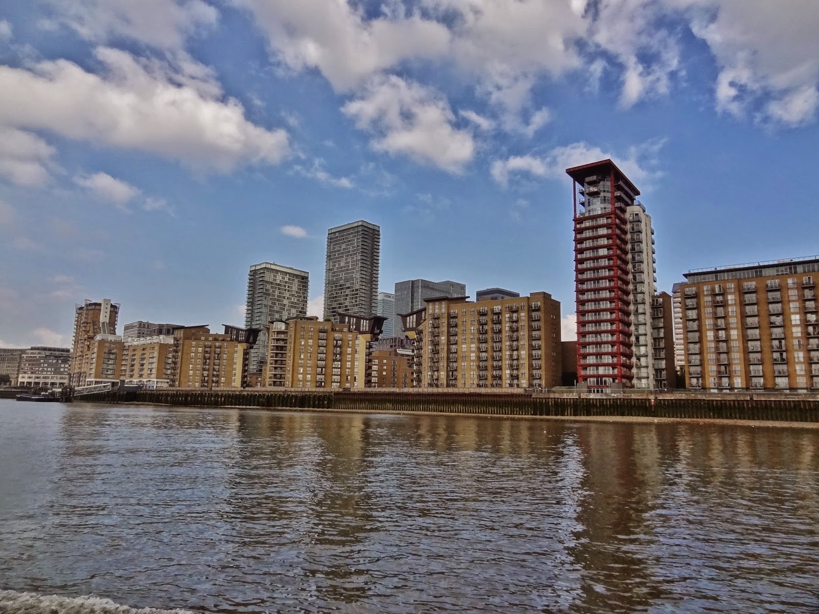 Más adelante pasamos muy cerca de Canary Wharf, el gran complejo financiero y de negocios situado en la Isla de los Perros, en el barrio de Tower Hamlets. En este complejo se encuentran grandes rascacielos, los segundos más altos de Londres por detrás de The Shard.