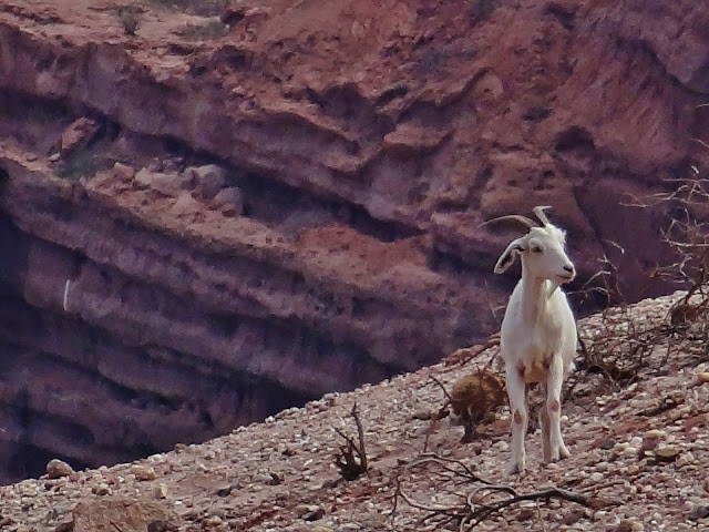 Testigo de excepción fue una simpática cabra que se alimentaba de hierbajos en el lugar y que apunto estuvo de ser atropellada. Decidió con total tranquilidad tomar el camino contrario al que llevaba el todoterreno y que pudo acabar con el banquete de hierbas locales que se estaba pegando, una vez observo con sus inquietos ojos la polvareda, los frenazos, las idas y venidas del vehículo.