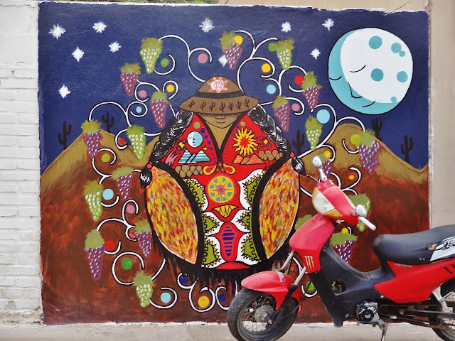 Cuenta también con un Museo del Vino que nosotros decidimos no visitar, pero si nos pasamos por el recinto en que durante el mes de febrero se celebra la Serenata de Cafayate que como ya os he contado es uno de los festivales de folclore más importantes del noroeste argentino. En sus proximidades pudimos disfrutar con algunas pinturas de paredes y fachadas, algunas de ellas geniales.
