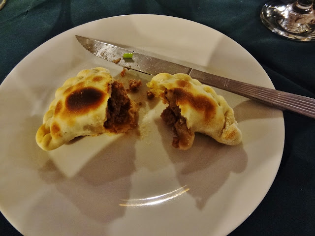No estuvo nada mal la cena, con entrantes de empanadas, tamal de maiz. Platos principales de ensalada el caso de María José y un estupendo bife, con verduritas y queso por encima, muy hecho para el gusto español…..pero en todo caso como ocurre con la carne a la brasa argentina,muy sabrosa. Todo ello regado con un vino Malbec llamado Desvarío.