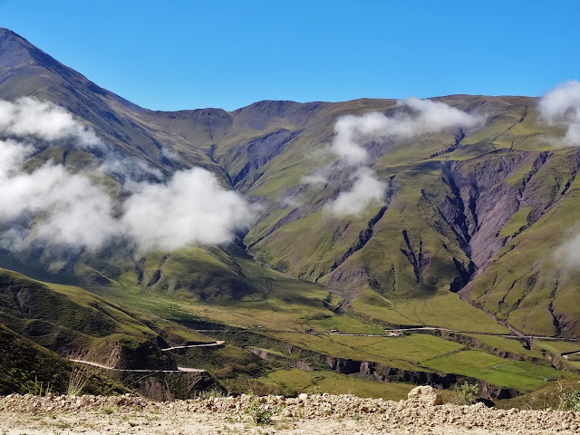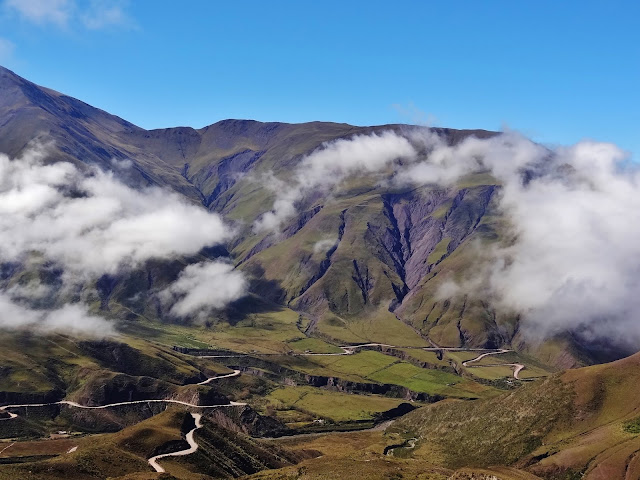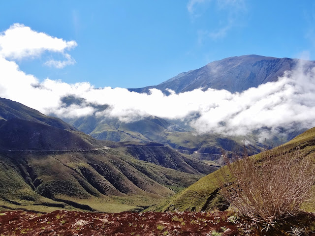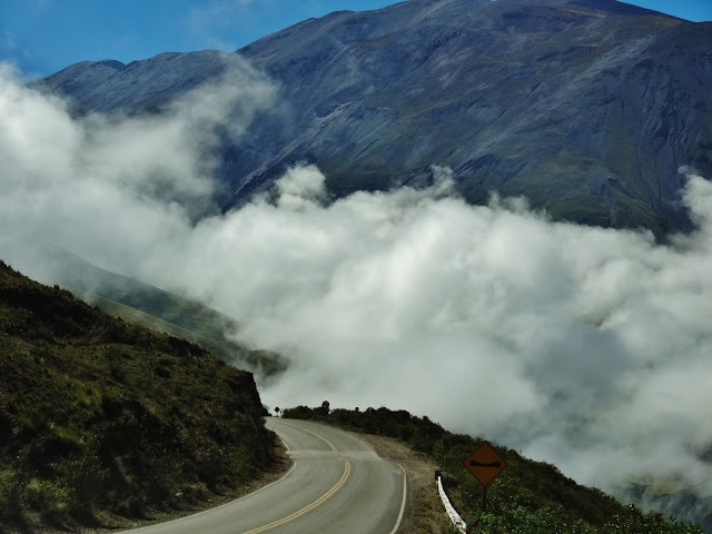 Sin dejar de ascender nos dirigimos hasta Piedra del Molino, paso de montaña de 3457 metros de altitud, situado a 93 kilómetros de Salta y que marca un cambio radical del paisaje. De la semidesértica planicie del Parque Nacional de los Cardones a los verdes valles que se generan en la Quebrada del Escoipe , en los que unas nubes casi perpetuas ascienden hasta la cima que marca la Piedra del Molino.