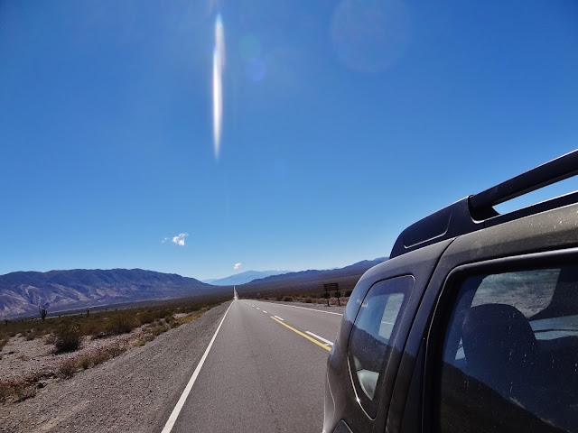 Una vez saciamos la sed y el apetito que nos acuciaba, iniciamos la marcha en dirección a nuestro destino final del día, la ciudad de Salta que aún estaba a 170 kilómetros, aunque en este caso la mayor parte se encuentra asfaltada, al menos hasta llegar al descenso de la Cuesta del Obispo. Antes de llegar a Salta debíamos disfrutar en el camino de varias atracciones paisajísticas, como la Recta del Tin Tin, Cuesta del Obispo y la Quebrada de Escoipe.