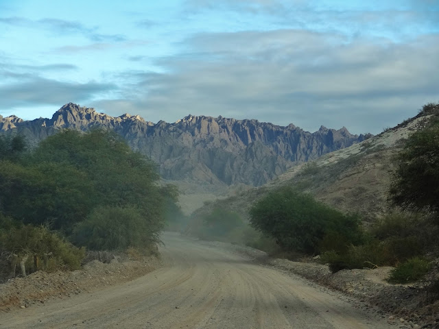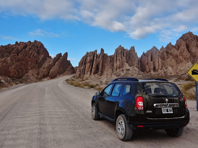 De este modo, decidimos madrugar bastante y a eso de las seis y media de la mañana estábamos desayunando, para una vez lleno el buche despegar, camino de Cachi. Primero una vez repostamos y adecentamos nuestro Dacia limpiando sus cristales, a estas alturas con bastante mierdecilla que impedía una correcta visión, no solo del camino, también de los muy bellos paisajes y parajes con los que nos íbamos a topar.