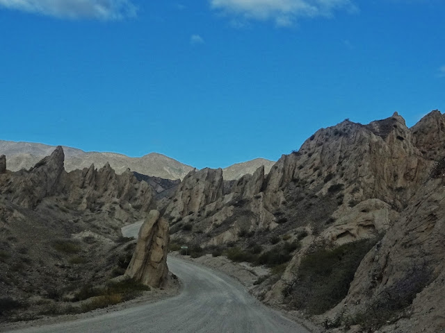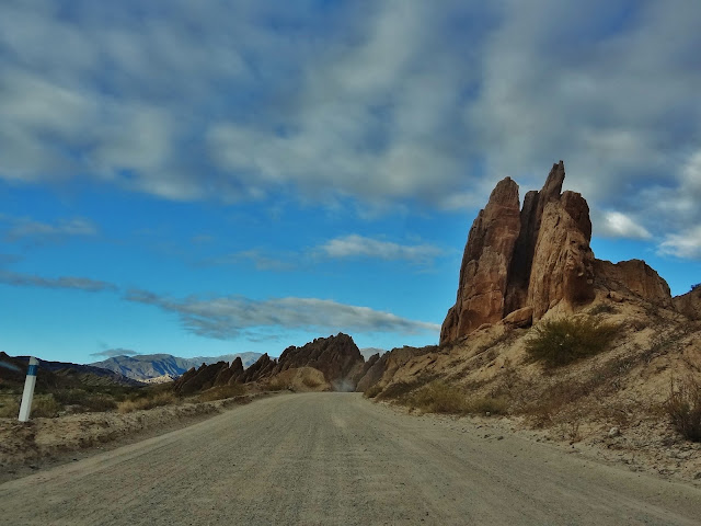 Una vez superado el accidente geográfico de la Quebrada, la Ruta 40 se hace más estrecha pero sigue rodeada de nuevas y bellas formaciones naturales, aisladas iglesias coloniales, y ranchos del mismo estilo que trasmiten sensación de abandono durante los 45 kilómetros que nos deben llevar por pista de ripio hasta el pueblo de Molinos.