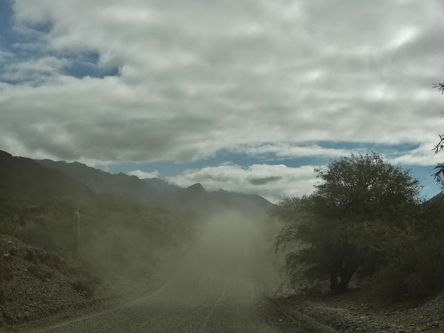 El trayecto de 25 kilómetros, que siguen siendo de ripio ofrece un paisaje más desértico y polvoriento, apareciendo los primeros cardones del día y en el que a pesar de las duras condiciones del entorno, la vida se deja ver en cualquiera de sus rincones.