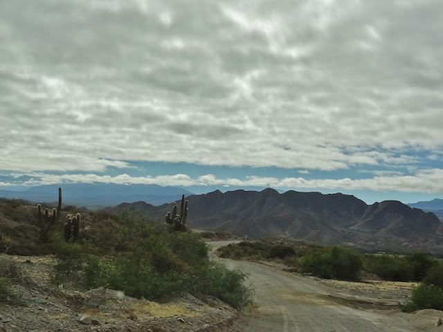 Preguntamos en nuestro alojamiento de Cafayate acerca de esta segunda alternativa, y así como el propietario Gustavo nos quitó las ganas, su mujer al día siguiente nos dijo que no debíamos tener problema porque el trayecto a pesar de ser largo y algo pesado, no debía verse alterado por condiciones climatológicas como la posibles lluvias anunciadas por algunas páginas de predicción. Nos dijo que era muy raro que lloviera en el trayecto, debido a que la pluviosidad de la zona es casi nula a lo largo de todo el año, y al igual que la cabra tira al monte la decisión para nosotros fue puramente instintiva y la propia de nuestra ya conocida naturaleza viajera esa que nos hace casi siempre inclinarnos casi siempre por aquella opción que más atractivos ofrece con independencia de las dificultades del camino o ese exceso de kilómetros para otros insalvables.