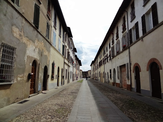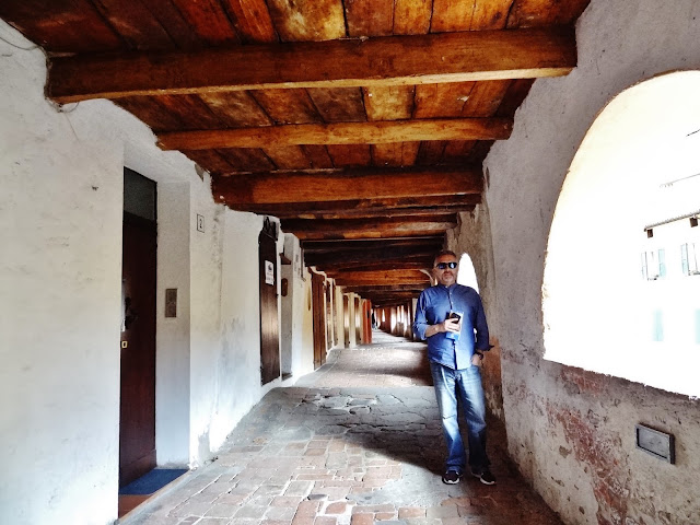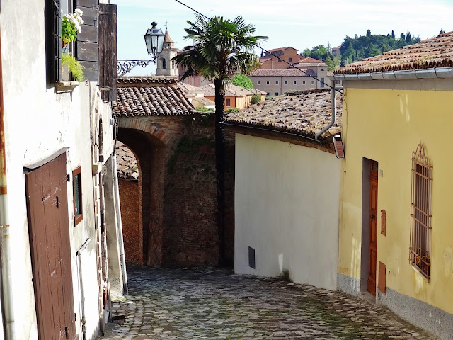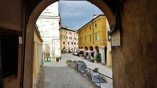 Hay que subir unas escaleras desde una de las calles principales de Brisighella y se accede a Via degli Asini. Pareciera en principio un acceso privado a un conjunto de viviendas pero al llegar sorprende esta calle elevada, empedrada y cubierta, con amplias ventanas arqueadas de diferentes tamaños que dan a esa calle principal desde la que se accede a Via degli Asini. Es algo único.
