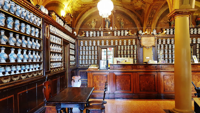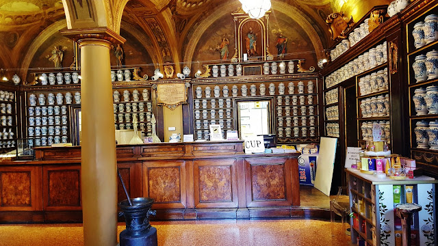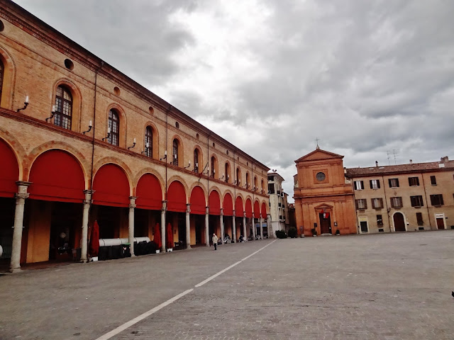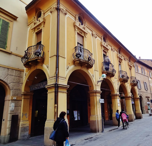 Continuando por la Vía Emilia se llega a un edificio civil con gran historia, La Farmacia dell´Ospedale. Se sitúa en un edificio que fue parte un antiguo hospital, trasladándose en el año 1766 la farmacia para con unas reformas dotar de su aspecto actual en 1794.