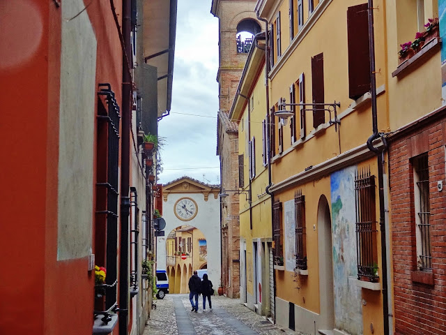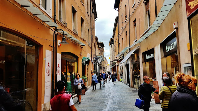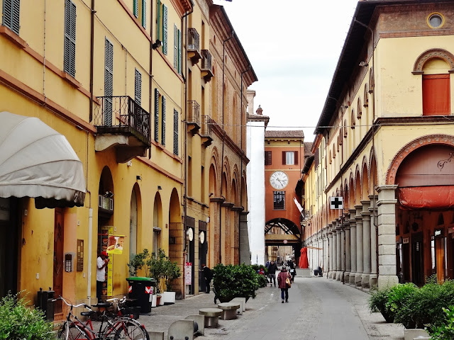 Seguimos avanzando por la Vía Emilia,ahora calle peatonal agradable, pero que es una antigua Vía Romana que data del año 187 a.c y que comunica una gran parte de las principales ciudades de la región. Esta Vía pasa por el centro de la ciudad y en un cierto punto encontramos L´Orolgio, un paso entre casas sobre la misma calle con el reloj.