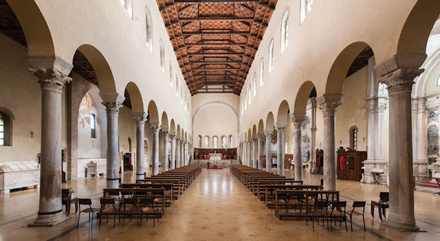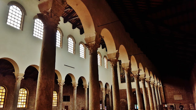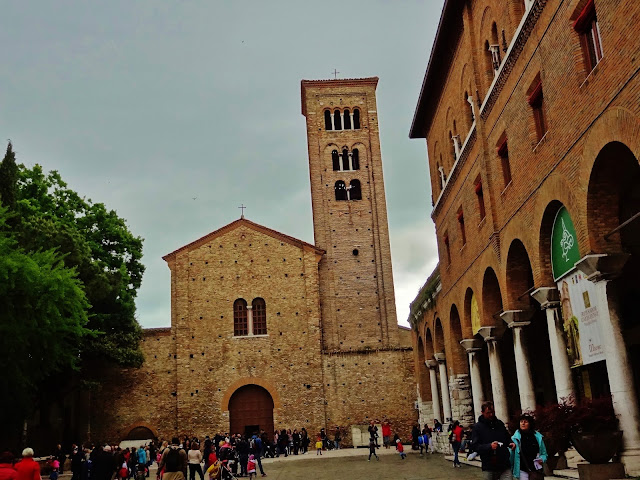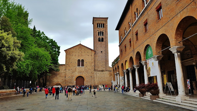 Nos dirigimos a esta muy hermosa iglesia, que en origen se construyó en el siglo V, pero que fue ampliada y reconstruida entre los siglos IX y X. En esta iglesia, allá por el año 1321 se celebraron los funerales de Dante Alighieri, encontrándose la tumba del mismo muy cerca de la Basílica.