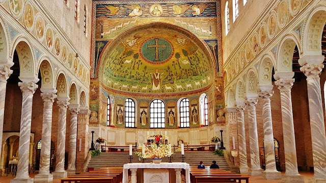 Último edificio patrimonio de la humanidad a visitar aunque ya no en la ciudad de Rávena, ya que esta Basílica está en la población de Classe que dista unos 8 km de Rávena.