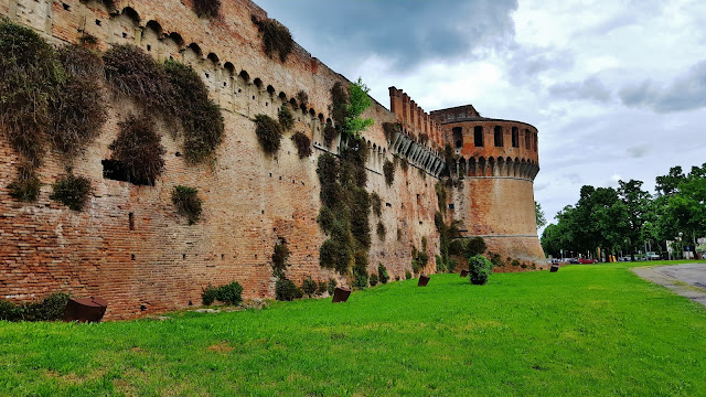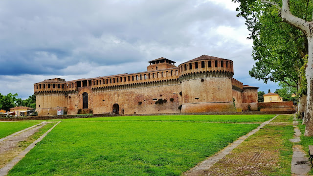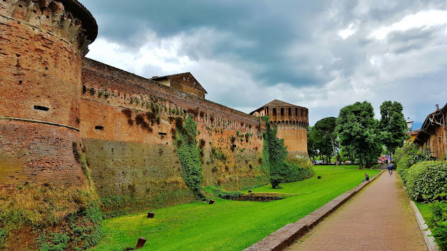 Siguiendo camino llegamos a la Piazzale della Bande Nere, lugar en el que se encuentra el principal monumento de la ciudad, la Rocca Sforzesca construido en el siglo XIII, ejemplo de arquitectura italiana de la edad media y renacimiento. Actualmente es un museo de armas y cerámica, y conjuntamente con el Museo de San Doménico y el Palazzo Tozzoni forma parte de los Museos Civicos de Imola.