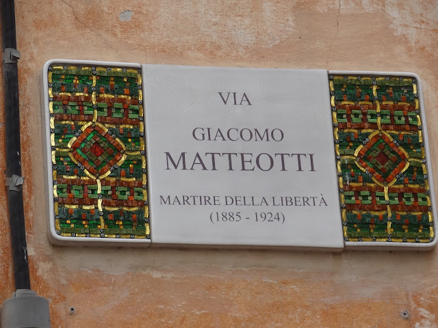 El siguiente punto en el recorrido fue la Piazza Giacomo Matteoti, cuyo aspecto actual proviene desde el año 1474. Es el centro de la ciudad y aquí se encuentra importantes Palazzos como el Comunale, edificio del actual Ayuntamiento o el Palazzo Sersanti con los habituales hermosos y amplios soportales dotados de cortinas rojas.