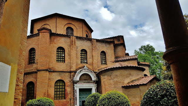 El recorrido hasta este nuevo monumento Patrimonio de la Humanidad, lo hicimos con el coche, porque se encuentra algo más alejado que el resto de monumentos del casco histórico y porque después de ver este mausoleo, nuestro siguiente destino sería la Basílica de San Apolinar in Classe, a 8 kilómetros de Ravena.
