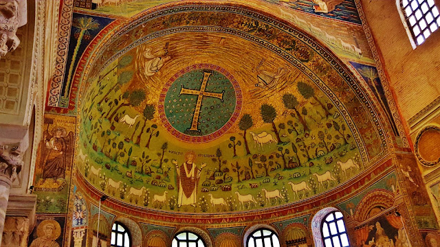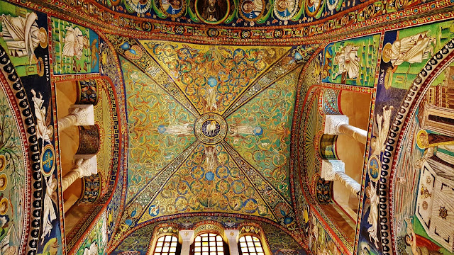 Durante siglos la ciudad de Rávena fue el centro del mundo, en un primer momento como capital del Imperio Romano de Occidente con Tedorico Rey de los Godos, posteriormente como centro del Imperio Bizantino, cuando cambió radicalmente la arquitectura de la ciudad enriqueciéndose con monumentos y mosaicos.