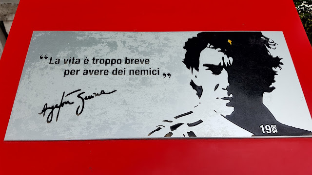 Terminamos con la visita de la ciudad pero aún nos restaba por pasarnos por las inmediaciones del que seguramente es el principal atractivo de la ciudad a la que da prestigio de forma internacional, su circuito para coches y motos, actualmente llamado CIRCUITO ENZO Y DINO FERRARI. Mundialmente conocido , en estas pistas falleció en un accidente el piloto brasileño Ayrton Senna.