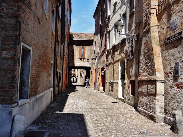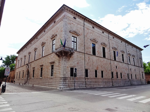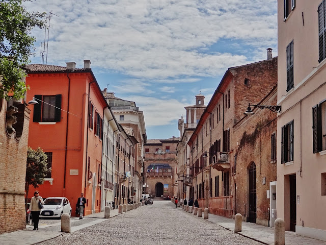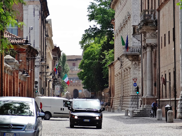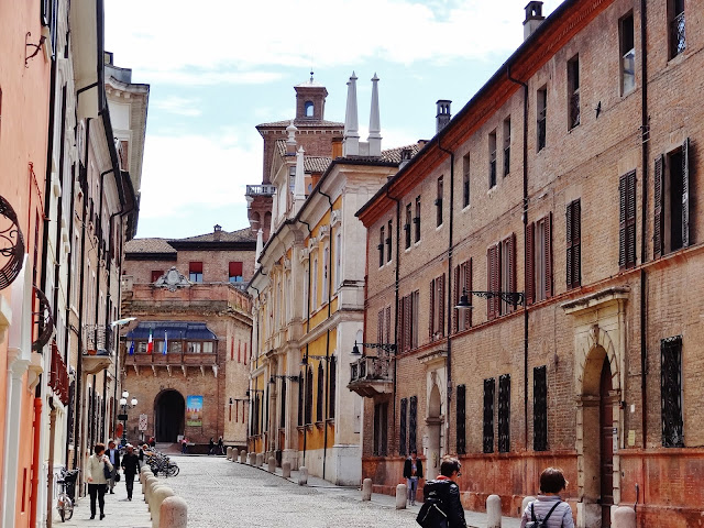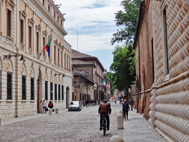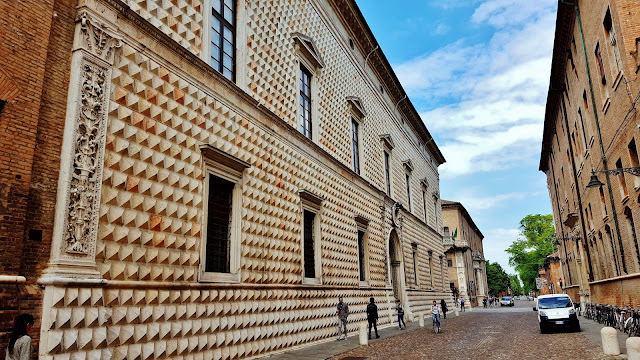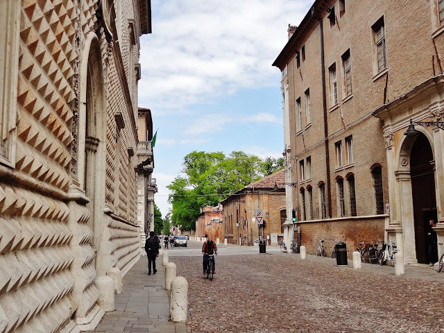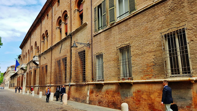 Recorrimos esta empedrada y larga calle, pero en esta ocasión también muy ancha observando todo tipo de Palazzos, como Palazzo di Giulio d’Este, Museo del Risorgimento e della Resistenza, o el Palazzo dei Diamanti. Entre estos edificios algunos de ellos son sede de la Universidad de Ferrara.