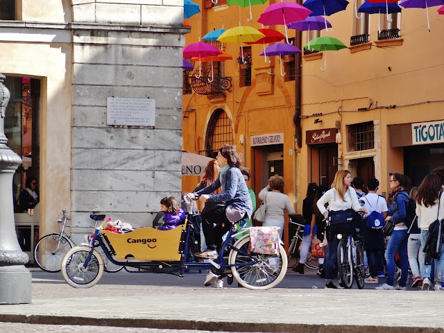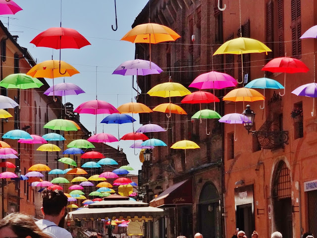 Abandonamos la Piazza Treste y Trento por la calle Guiseppe Mazzini, muy conocida por tener unos coloridas paraguas que además de decorar el tránsito por la calle, otorgan unas miajas de sombra que se agradecen en las más calurosas.