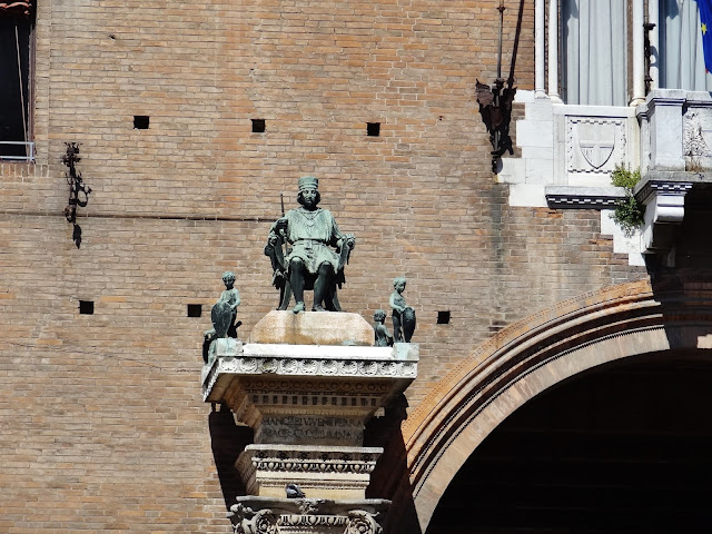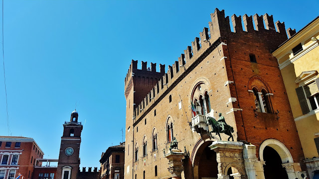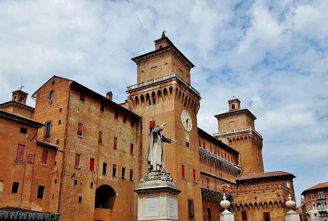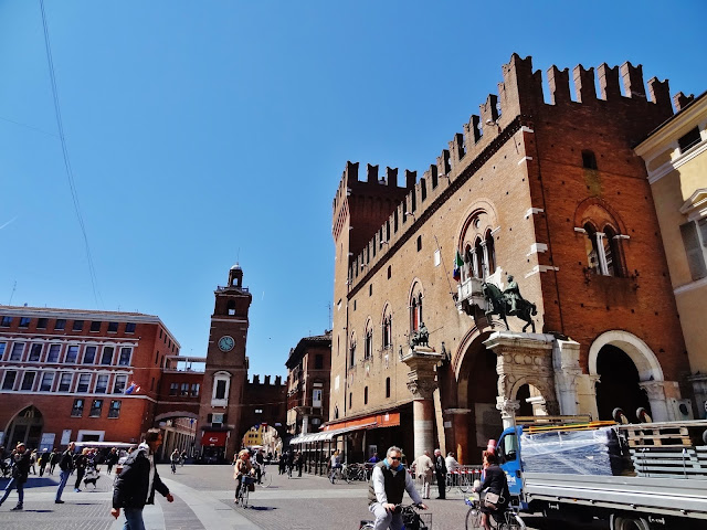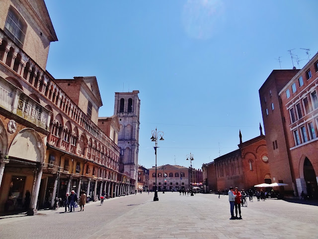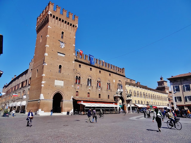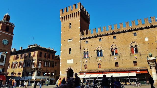 Inmediatamente nada más abandonar el Castillo, nos topamos con la Piazza Savonarola, ubicada entre el Castillo y el Palazzo Ducale actual ayuntamiento, pero construido en el siglo XIII fue la primera residencia de los Este.