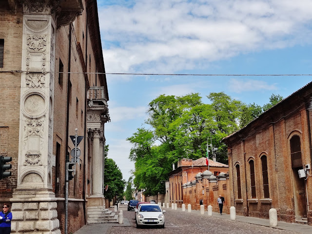 Pero nos faltaba, recorrer la zona que hizo que fuera considerada como ejemplo de urbanismo renacentista. El centro de esta parte de la ciudad se extiende a partir de su calle más representativa y principal, la Corso Ercole del Este. La calle surge enfrente de la fachada principal del Castillo.