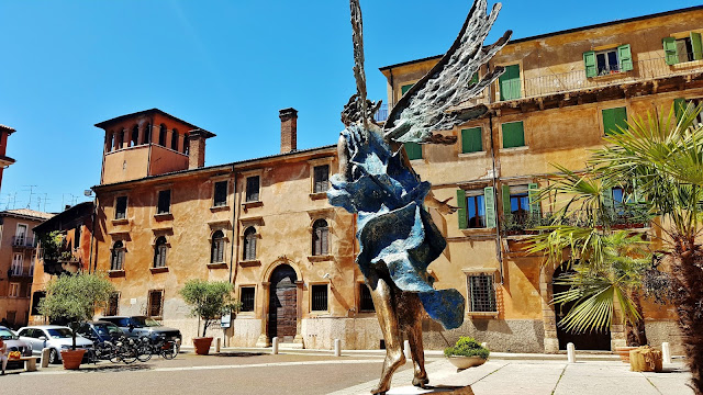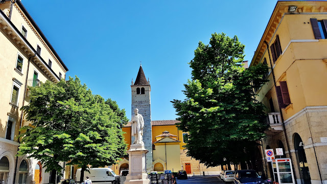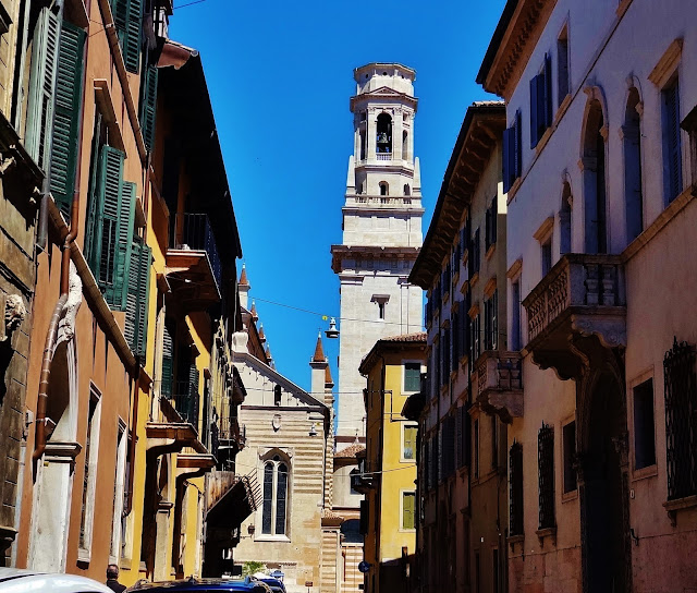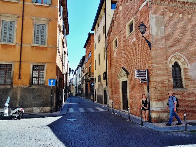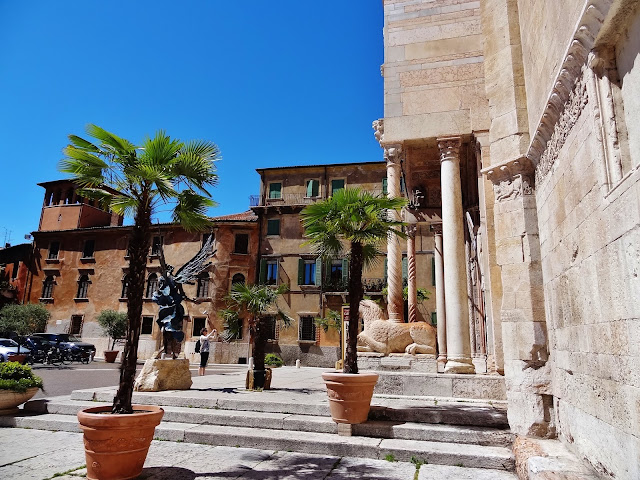 Cruzando el Ponte Garibaldi volvimos al casco histórico de Verona con la intención de visitar su Catedral, sita en la llamada como no podía ser de otro modo, Piazza del Duomo y a la que llegamos después pasear por varias calles muy bellas.