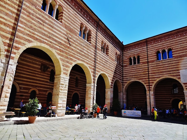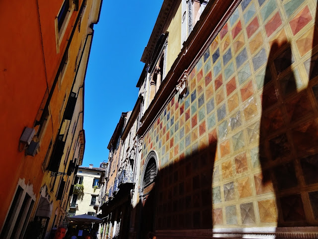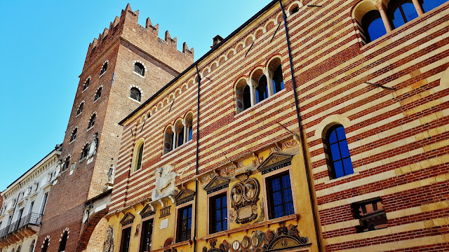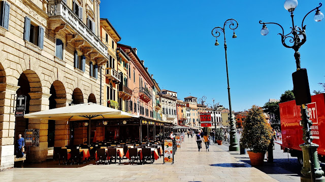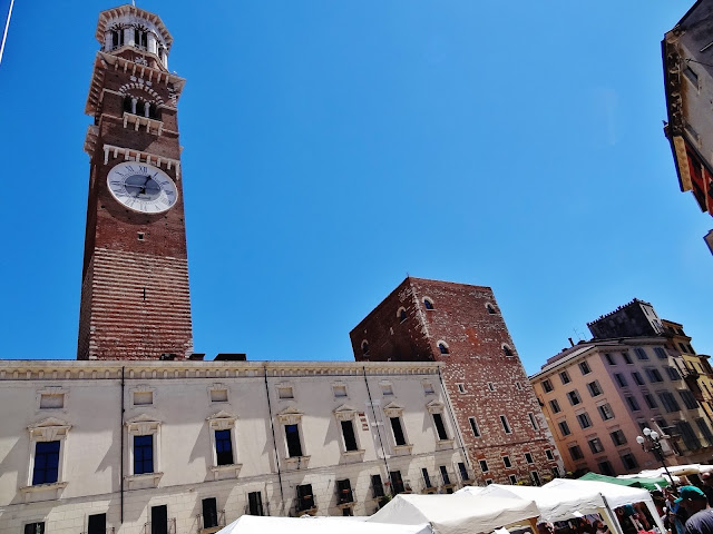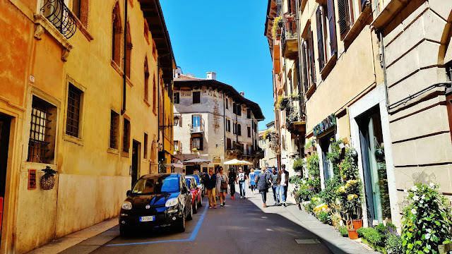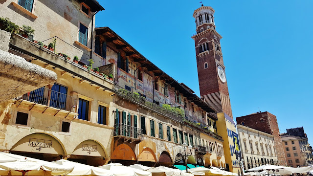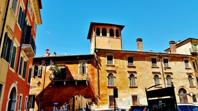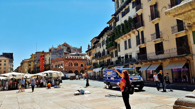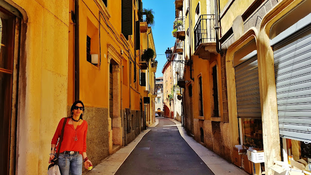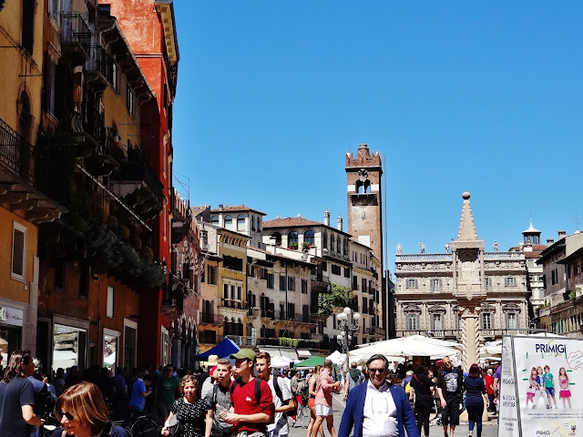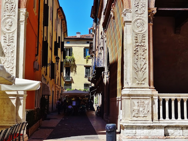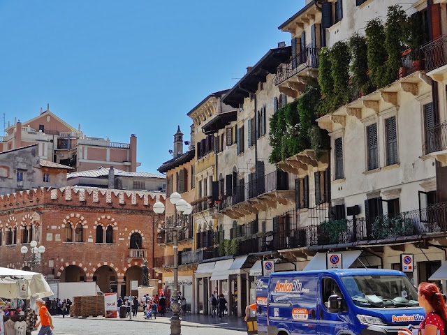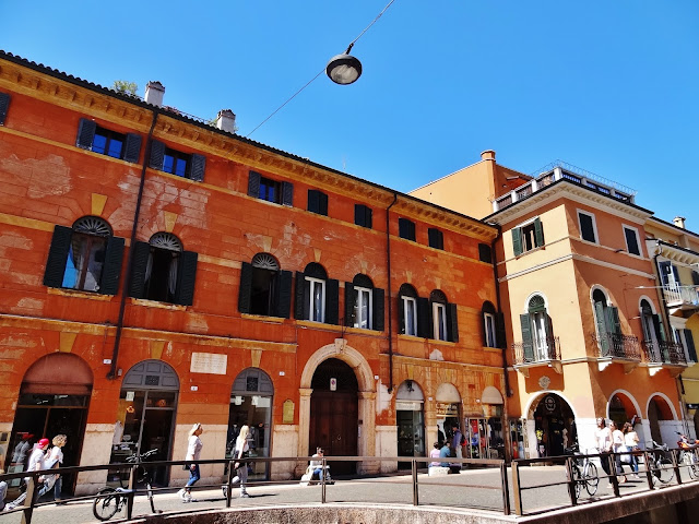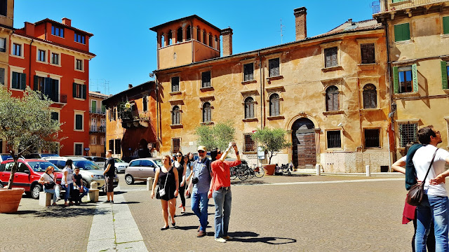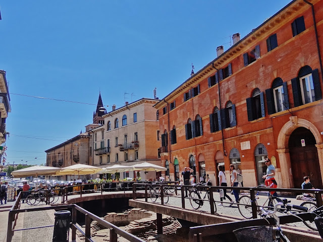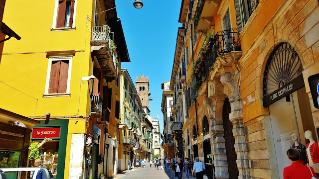 Caminamos por muy bellos rincones para llegar hasta la calle Corso Porta de Borsari, que en realidad es la continuidad del Corso de Santa Anastasia que ya habíamos recorrido y que deja en uno de sus laterales la Piazza delle Erbe.