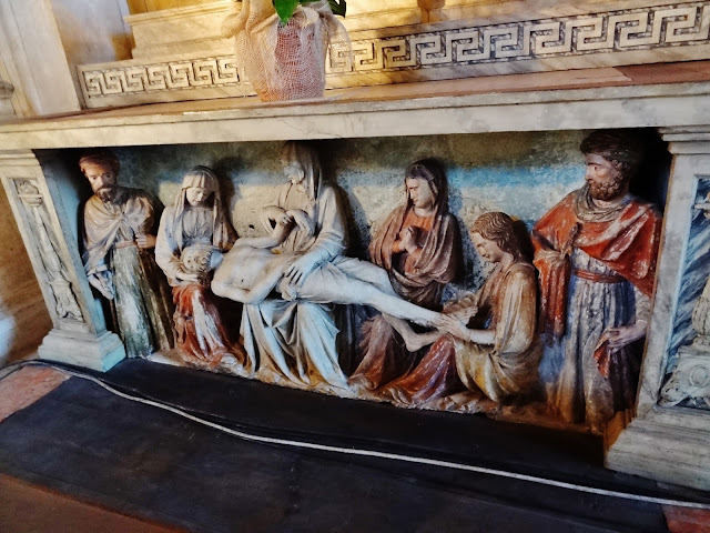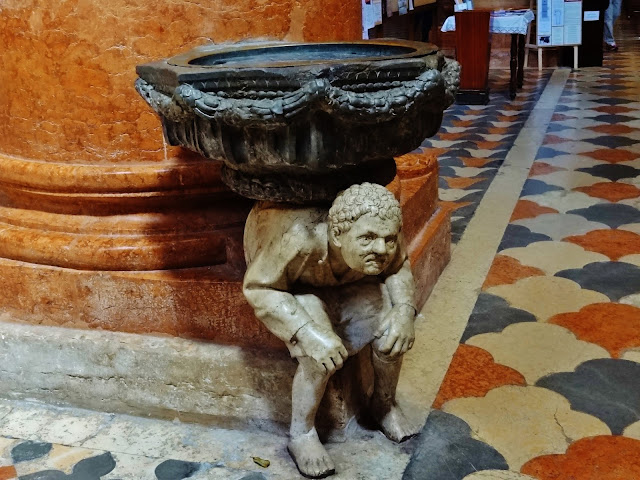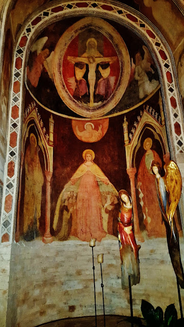 A la izquierda de la iglesia encontramos un Sárcofago perteneciente a un tal Guglielmo de Castelbarco, perteneciente a una familia de la época que aporto muchos reales para la construcción de la iglesia.