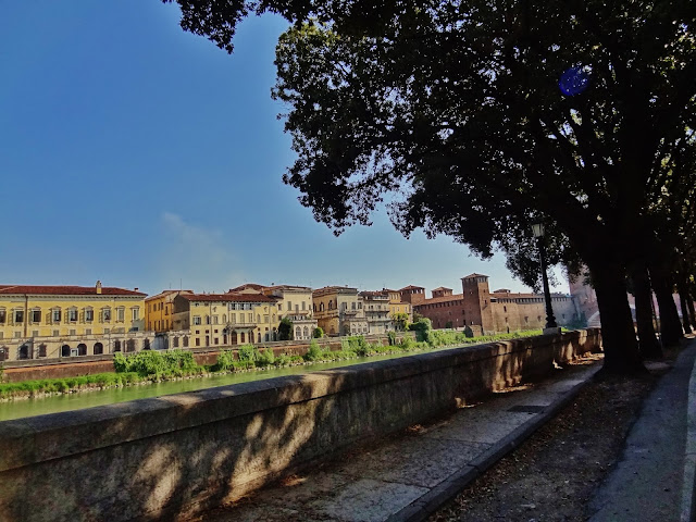 Merece la pena en todo caso cruzar el puente para disfrutar de los perfiles de la ciudad y sus diferentes monumentos desde la ribera opuesta del río. Decidimos hacer el trayecto hasta el Duomo de Verona, siguiendo el paseo que discurre por la ribera externa del río Adige, cruzandofinalmente un nuevo puente para volver al casco histórico, Ponte di Garibaldi.